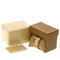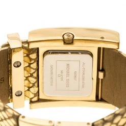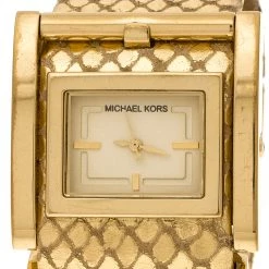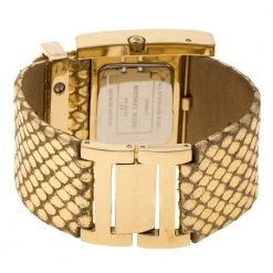 The fashion house of Michael Kors is also loved for its extravagant watches just like this beautiful MK2133 wristwatch. Crafted in a wide gold tone snake print embossed leather strap and yellow gold plated stainless steel case, this eye catching watching features a sleek and simple small gold dial to maintain a perfect balance.