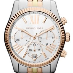A beautiful look that can be made to look effortlessly casual and stunningly professional and formal, this Michael Kors Lexington watch is versatile and stylish. Constructed in accents of yellow gold plated, rose gold plated and stainless steel metals, this watch features a fluted bezel and a white dial
