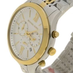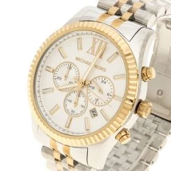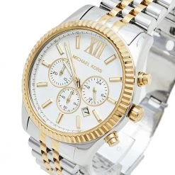Michael Kors Silver White Two-Tone Stainless Steel Lexington MK8344 Men’s Wristwatch 45 Mm For Men