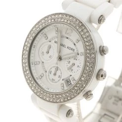 Michael Kors White Crystal Pave Stainless Steel Layton MK5958 Women’s Wristwatch 44 Mm For Women