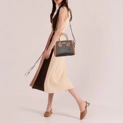 Michael Kors Brown Signature Coated Canvas And Leather Small Belted Mercer Satchel For Women