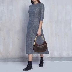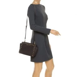 Michael Kors Dark Brown/Black Signature Coated Canvas And Leather Jade Shoulder Bag For Women