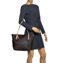 MICHAEL Michael Kors Brown Signature Coated Canvas And Leather Jet Set East West Tote For Women