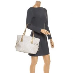 Michael Kors White Signature Coated Canvas And Leather Medium Crosby Messenger Bag For Women