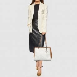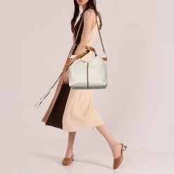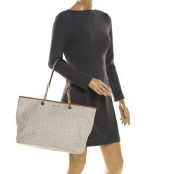 Michael Kors White/Brown Signature Canvas And Leather Large Downtown Astor Shoulder Bag For Women