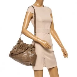 MICHAEL Michael Kors Beige Python Effect Patent Leather Buckle Strap Shoulder Bag For Women