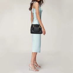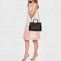 Michael Kors Black Leather Small Ava Top Handle Bag For Women
