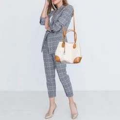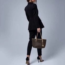 Michael Kors Brown/Beige Signature Coated Canvas And Leather Small Jet Set Travel Tote For Women