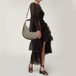 Michael Kors Beige/Brown Signature Canvas And Leather Small Susan Shoulder Bag For Women