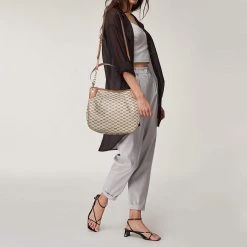 Michael Kors Beige/Brown Signature Coated Canvas And Leather Mini Camera Crossbody Bag For Women