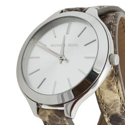 Michael Kors Silver Stainless Steel Leather Slim Runway MK-2467 Women’s Wristwatch 42 Mm For Women
