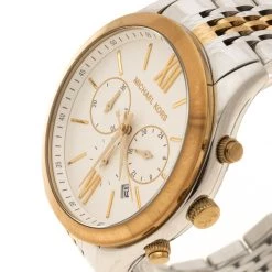 Michael Kors Silver White Two-Tone Stainless Steel Lexington MK8344 Men’s Wristwatch 45 Mm For Men
