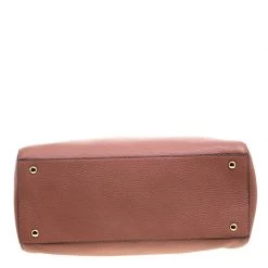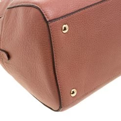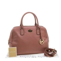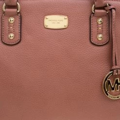 Make everyone gape at your style when you step out swaying this Michael Kors Sandrine satchel. It has been crafted from rose pink leather and held by two handles and a detachable shoulder strap. The bag has a top zipper that leads to a fabric interior equipped with one zip and two slip pockets. Flaunting a structured body, this one is complete with gold-tone MK charm.