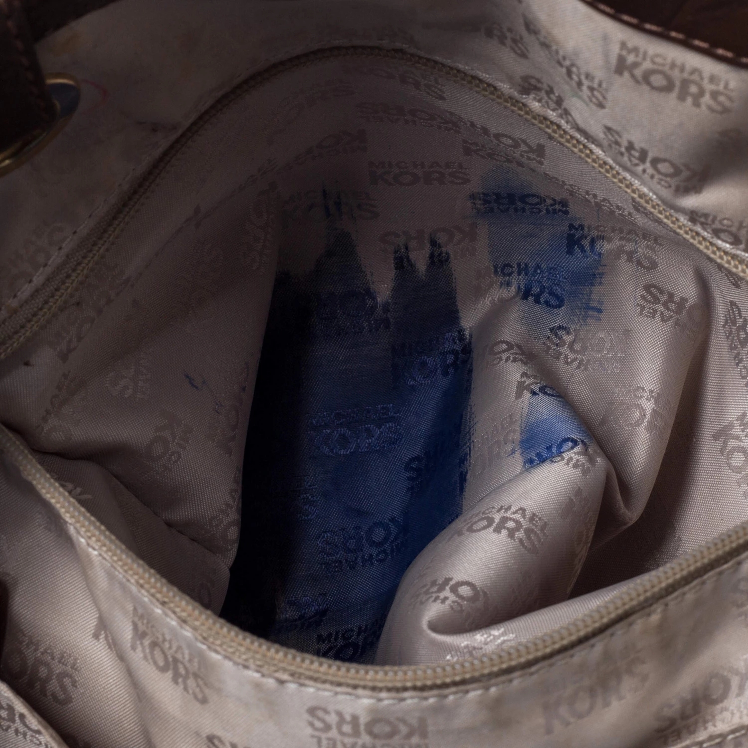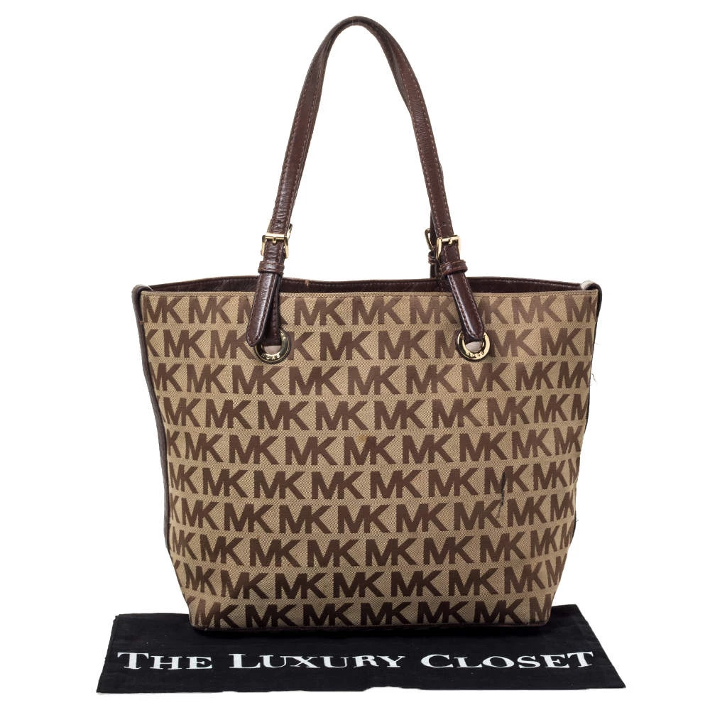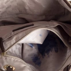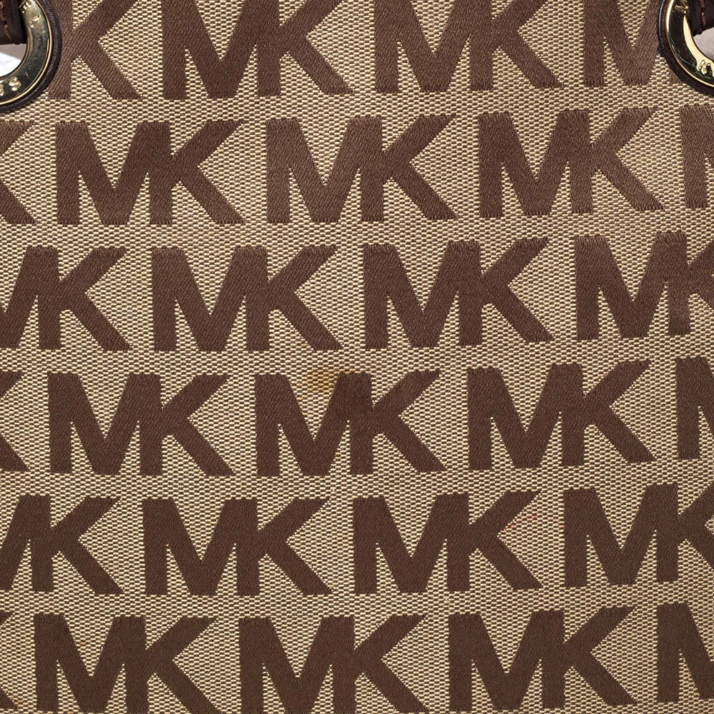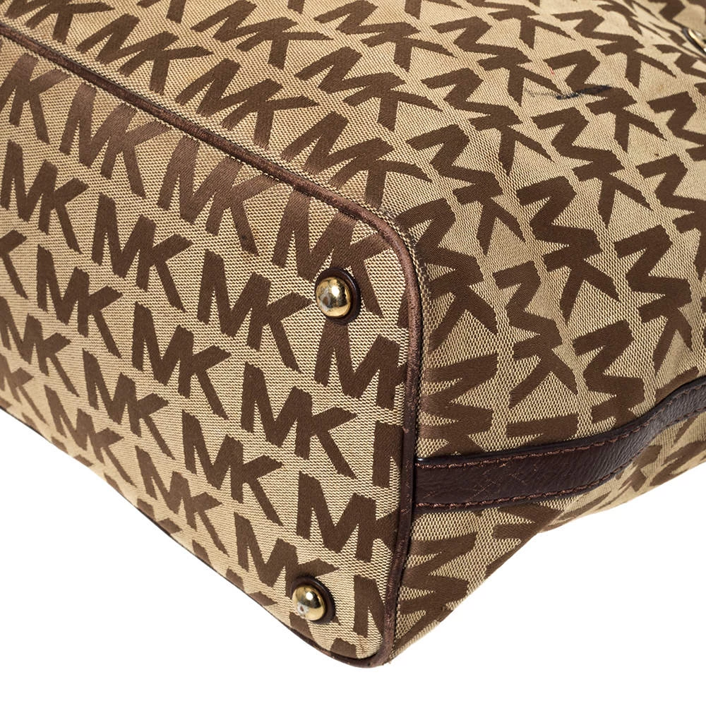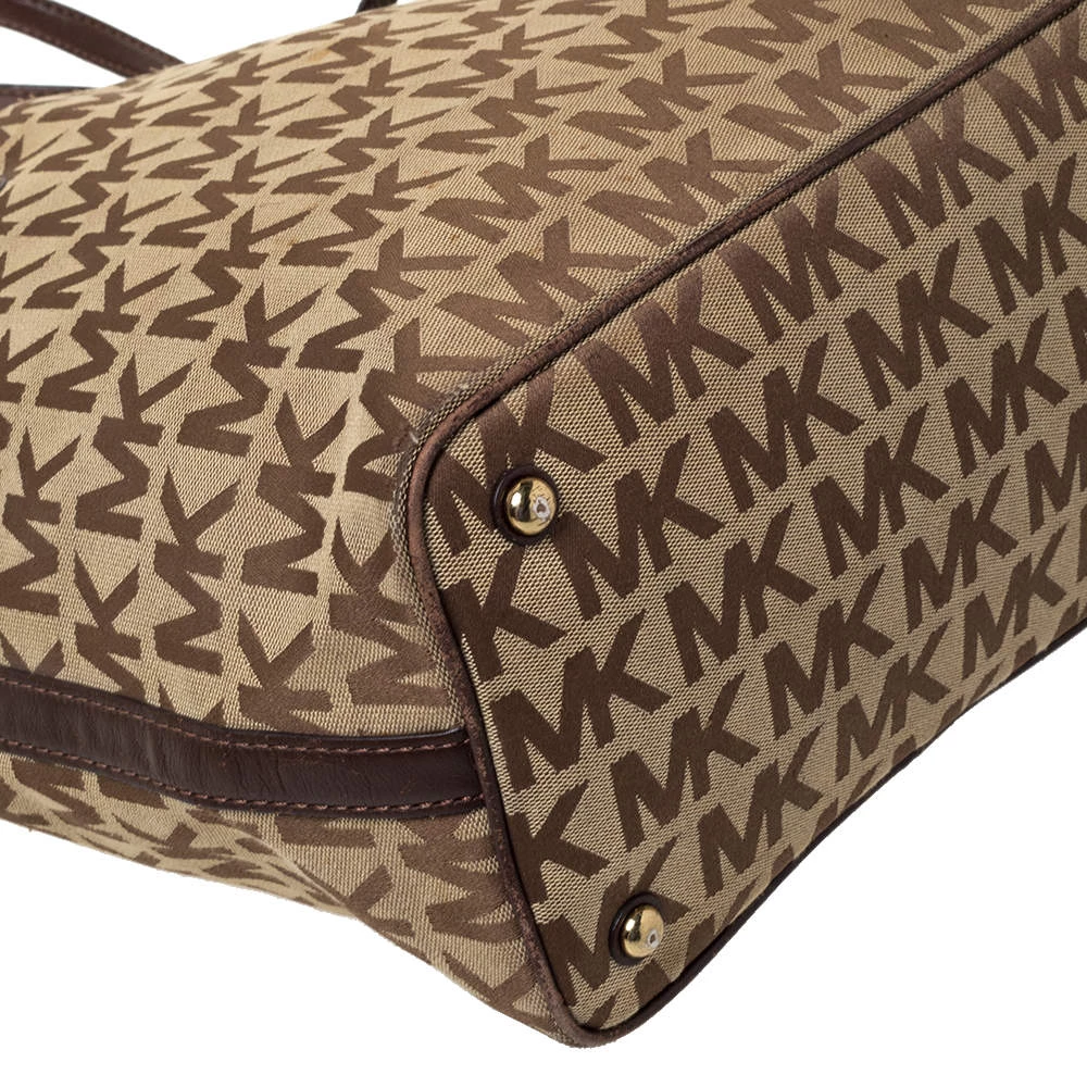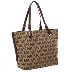 This beautifully designed signature-coated canvas and leather tote is surely a must-have. The smooth nylon lining on the inside gives you a versatile bag. Expertly crafted, this bag from Michael Kors is a fantastic pick. The beige-brown bag brings a sophisticated touch to its charm.