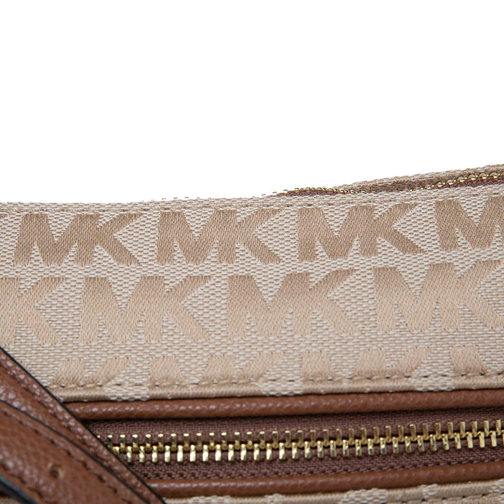 Fashioned with signature canvas and leather on the exterior, this shoulder bag will make a reliable addition to your closet. The everyday bag by Michael Kors is lined with fabric and held by a shoulder strap.