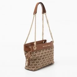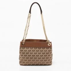 This Susan bag by Michael Kors will provide you with the utmost comfort and a classy look. Crafted from signature canvas and leather, it is paired with dual chain-leather handles, gold-tone hardware, and a fabric-lined interior. The brand detailing on the front lends it a recognizable sign-off.