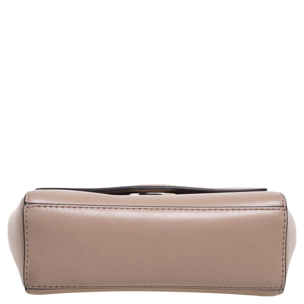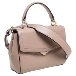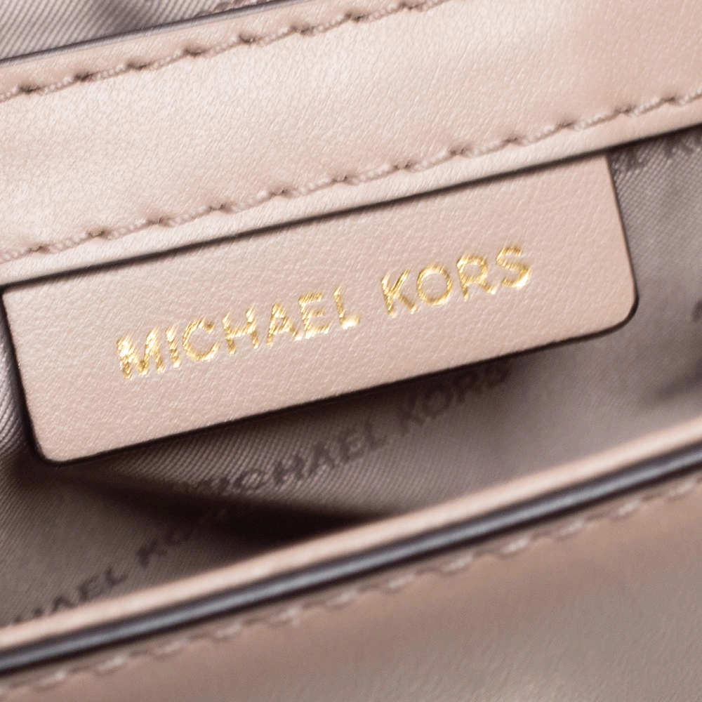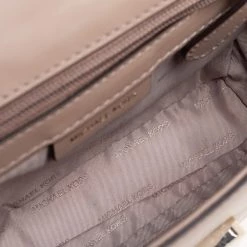 This beige-colored bag comes from the fashion house of Michael Kors. Crafted from leather, it features a durable fabric interior that ensures to house your lipstick, wallet, and other essentials. Designed with a flap closure, it flaunts a gold-tone brand logo at the front.