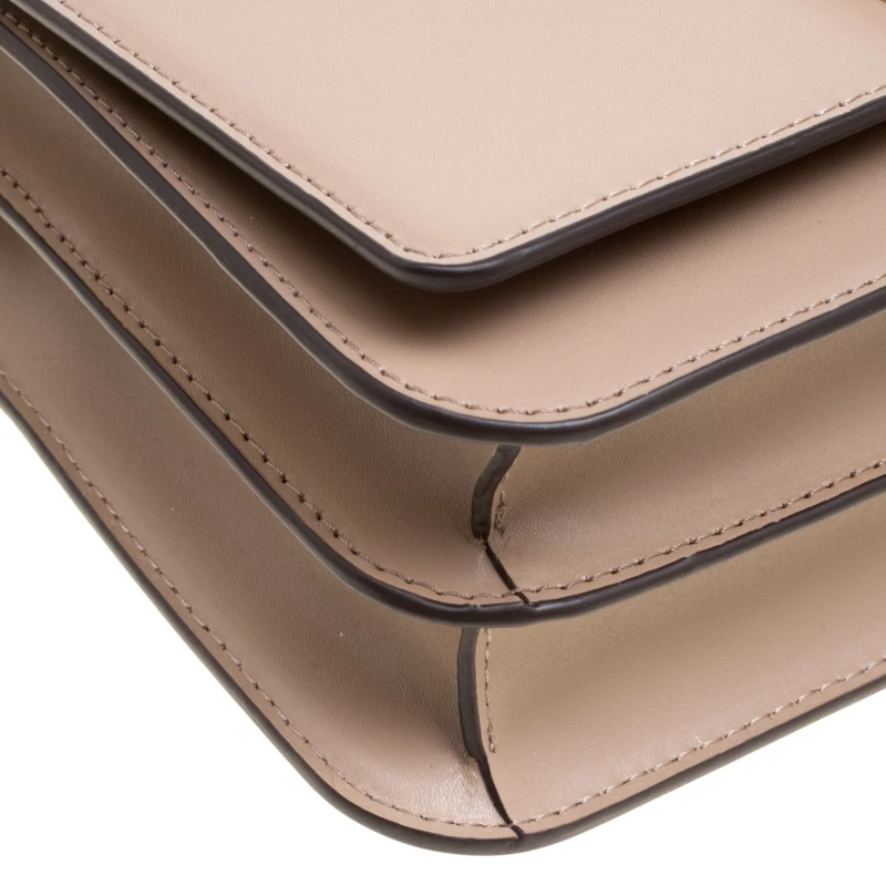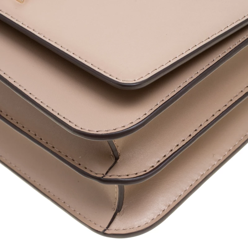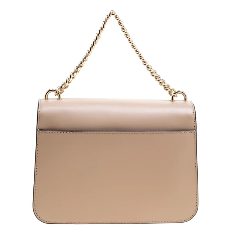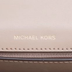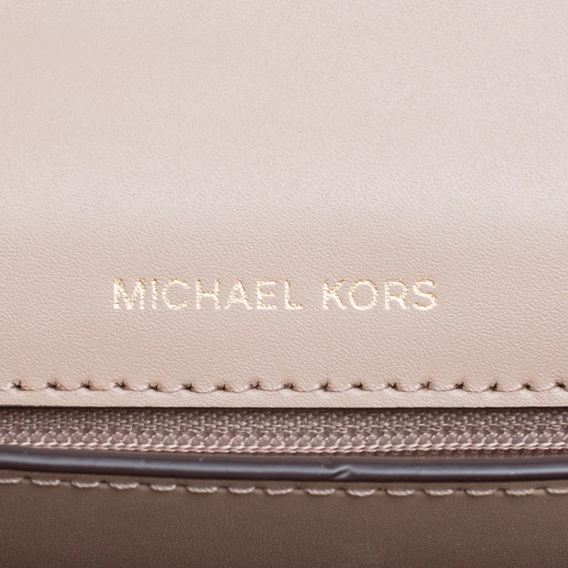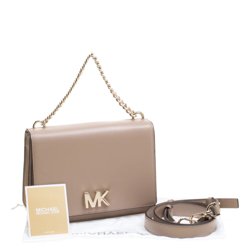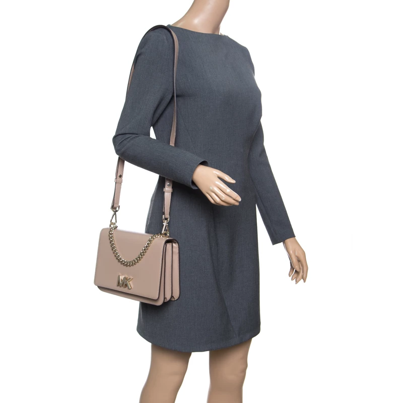 This Swag Shoulder bag from the house of Michael Kors has been crafted from a timeless beige leather body and detailed with gold-tone MK lettering on it. It features a flap style with a two-compartment interior and a zipper wall pocket. It can easily house your day to day essentials. Carry it by the chain shoulder strap or attach the leather strap for a cross-body styling.