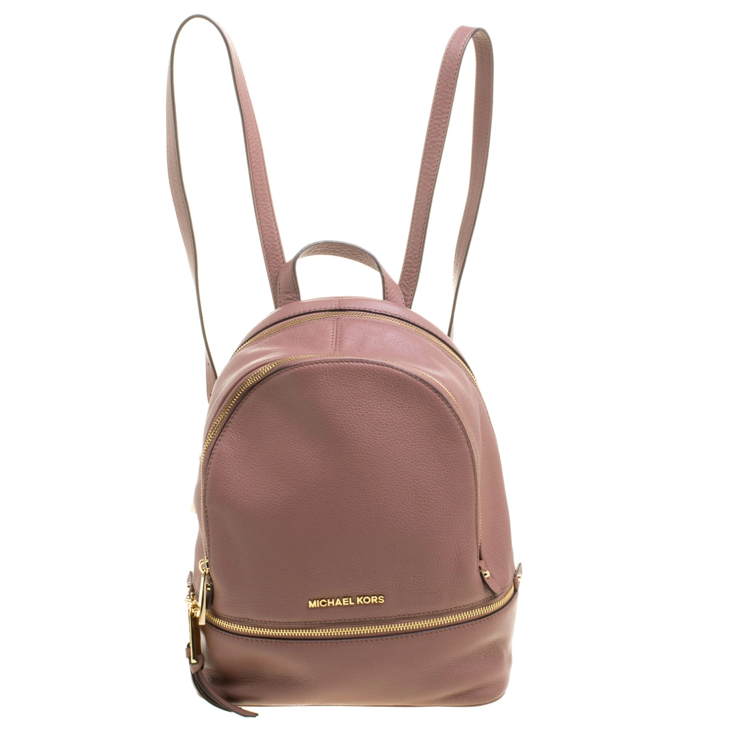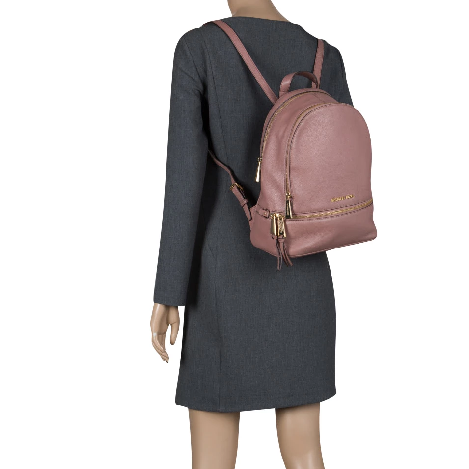 Get set to look uber stylish with this beige backpack from Michael Kors. It has been crafted from leather it flaunts zippers that reveal a spacious fabric-lined interior, a zip pocket on the front and shoulder straps. This piece is very much in vogue, so get your hands on this today!