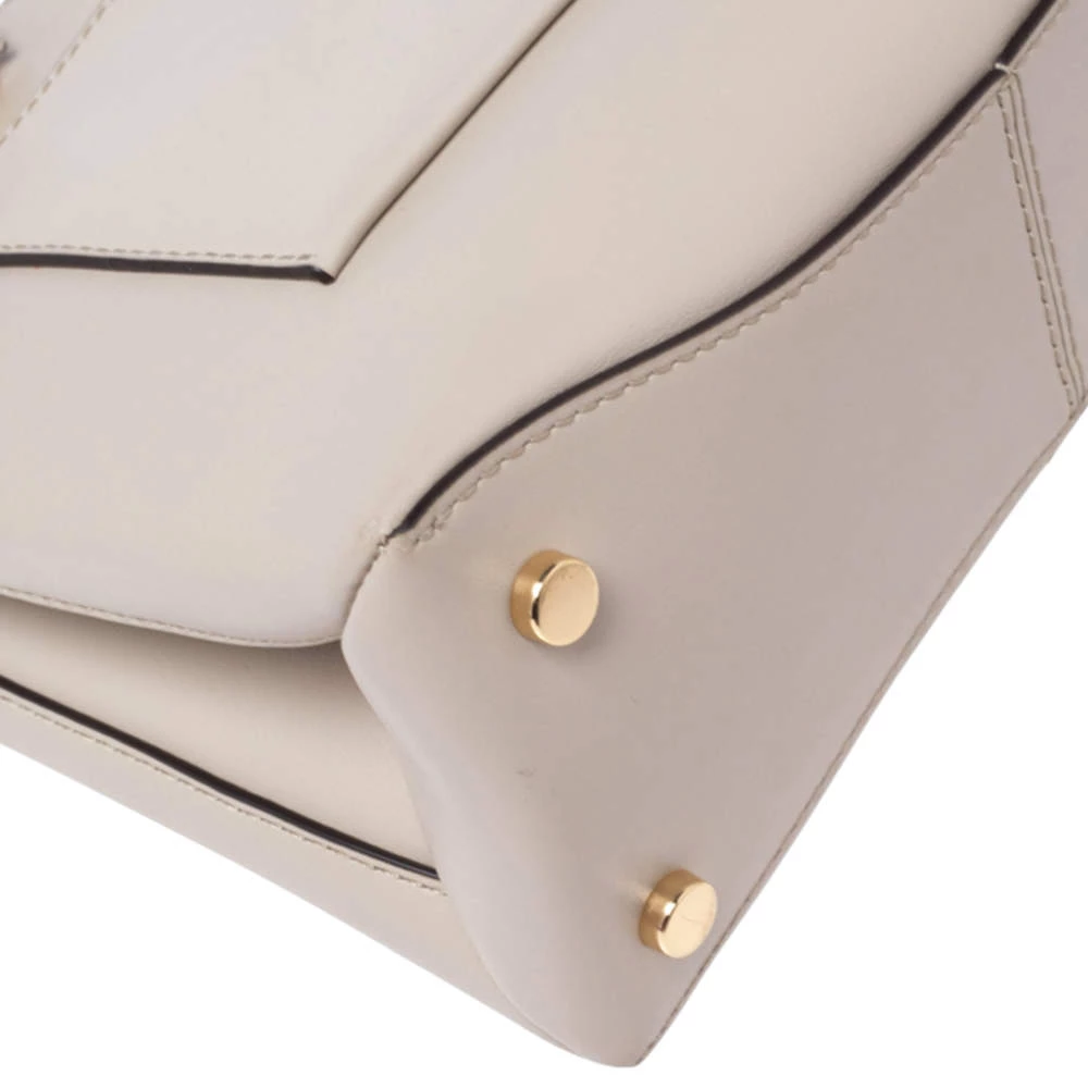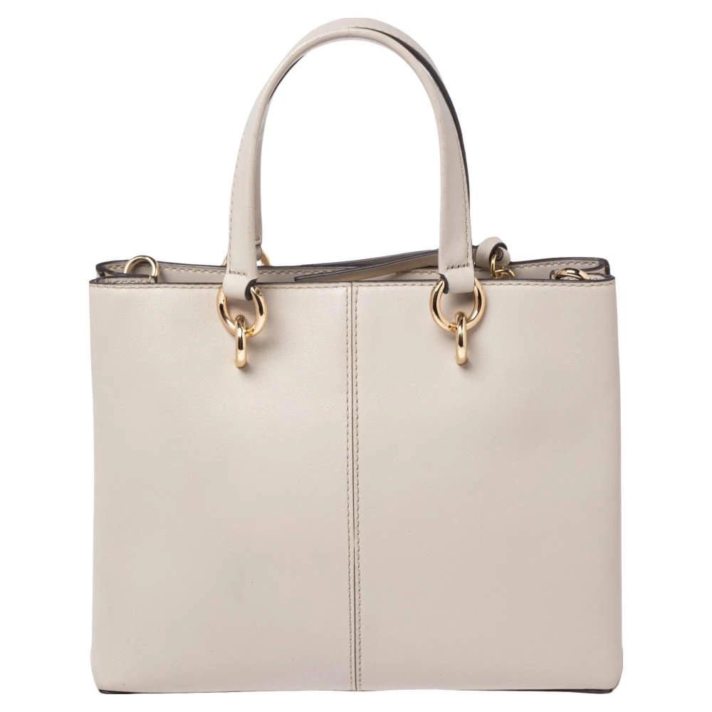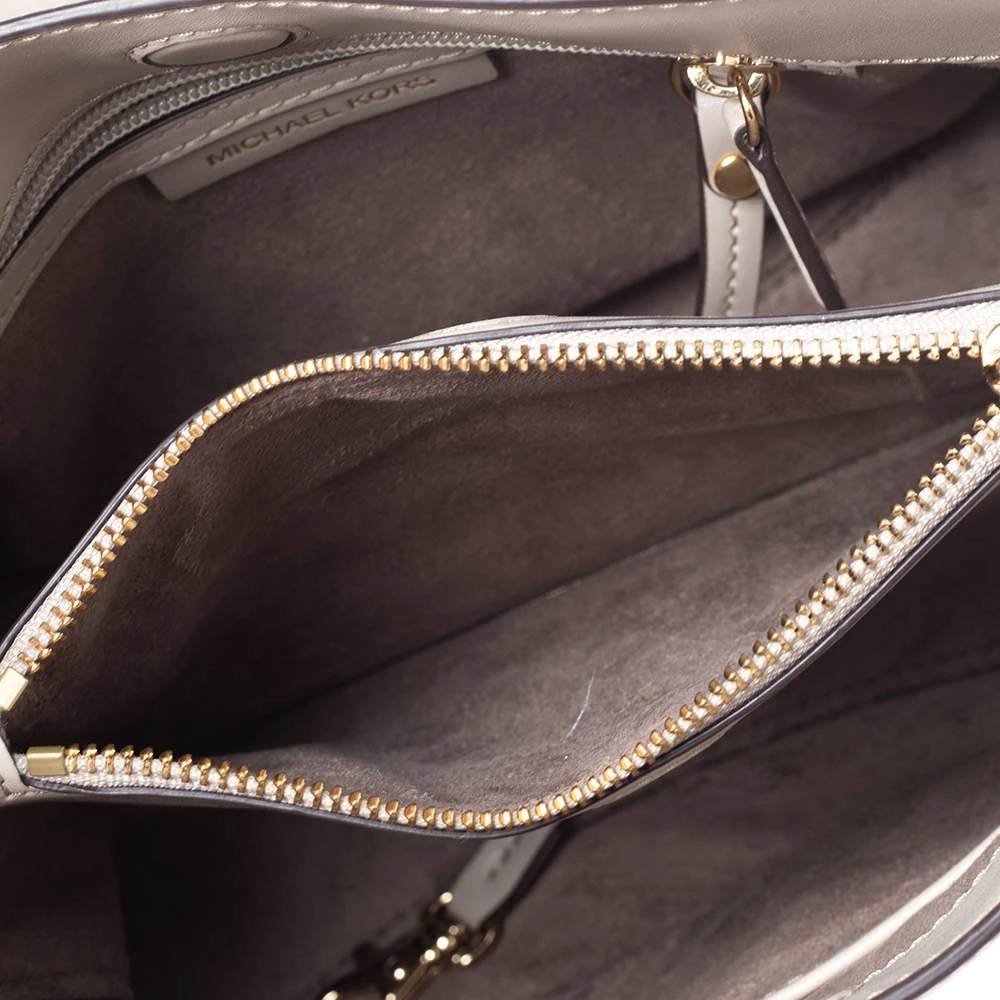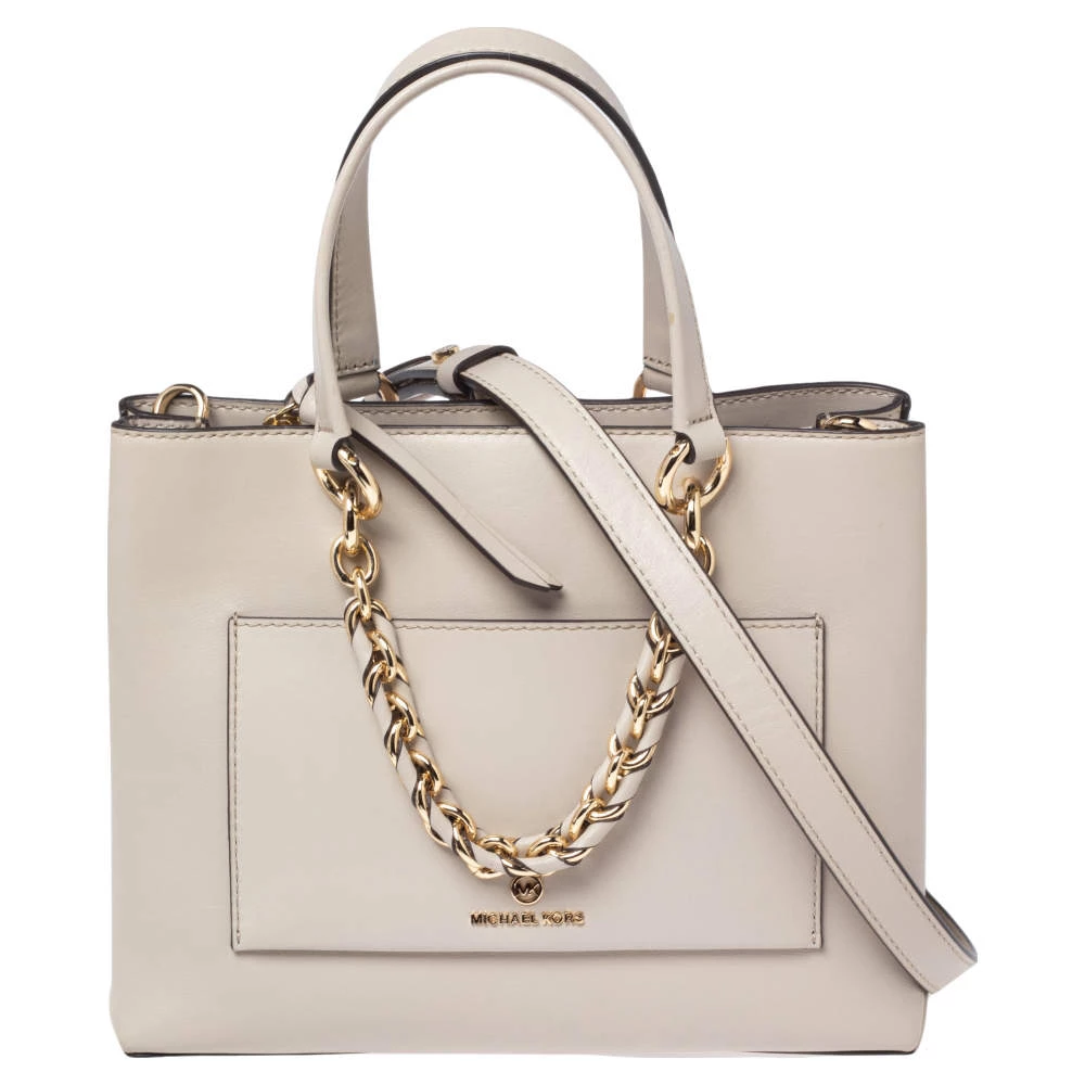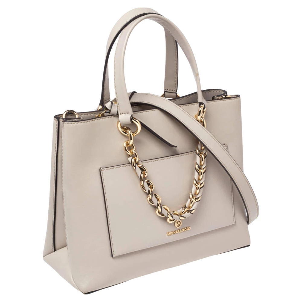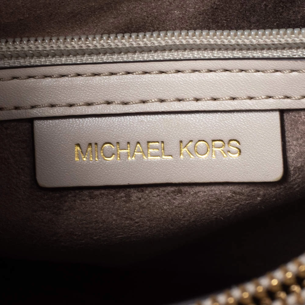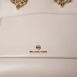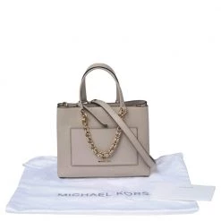 You’re sure to fall in love with this Cece bag from Michael Kors. Crafted from beige leather, the bag flaunts a front pocket. It has a spacious Alcantara-lined interior housing a zip pocket. This beauty is complete with two flat handles and a leather shoulder strap.