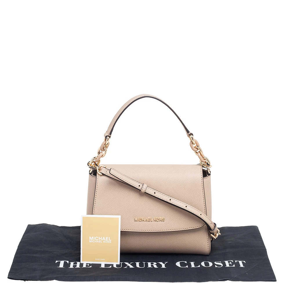 Stunning to look at and durable enough to accompany you wherever you go, this Michael Kors Sofia bag is a joy to own! This bag is crafted from leather and designed with a logo-accented front flap. It is held by a top handle and a shoulder strap and is equipped with an interior, perfectly sized to carry your belongings.
