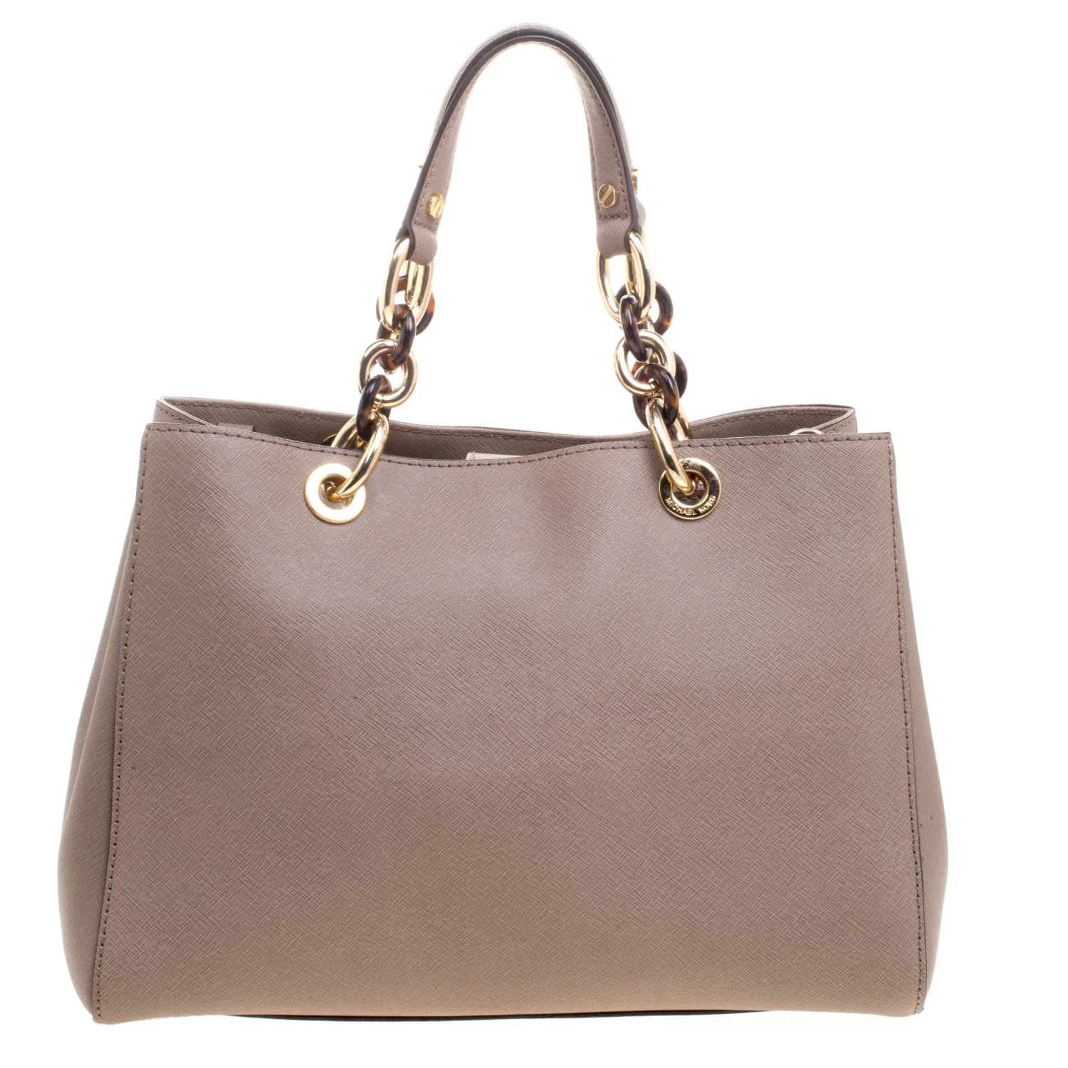 This tote by Michael Kors is a piece all fashionistas must look out for! Meticulously crafted from leather, it features a beige hue and two handles for you to parade it. The bag is equipped with a spacious fabric-lined interior that has a zip pocket. Complete with gold-tone hardware, this bag will make an ideal buy.