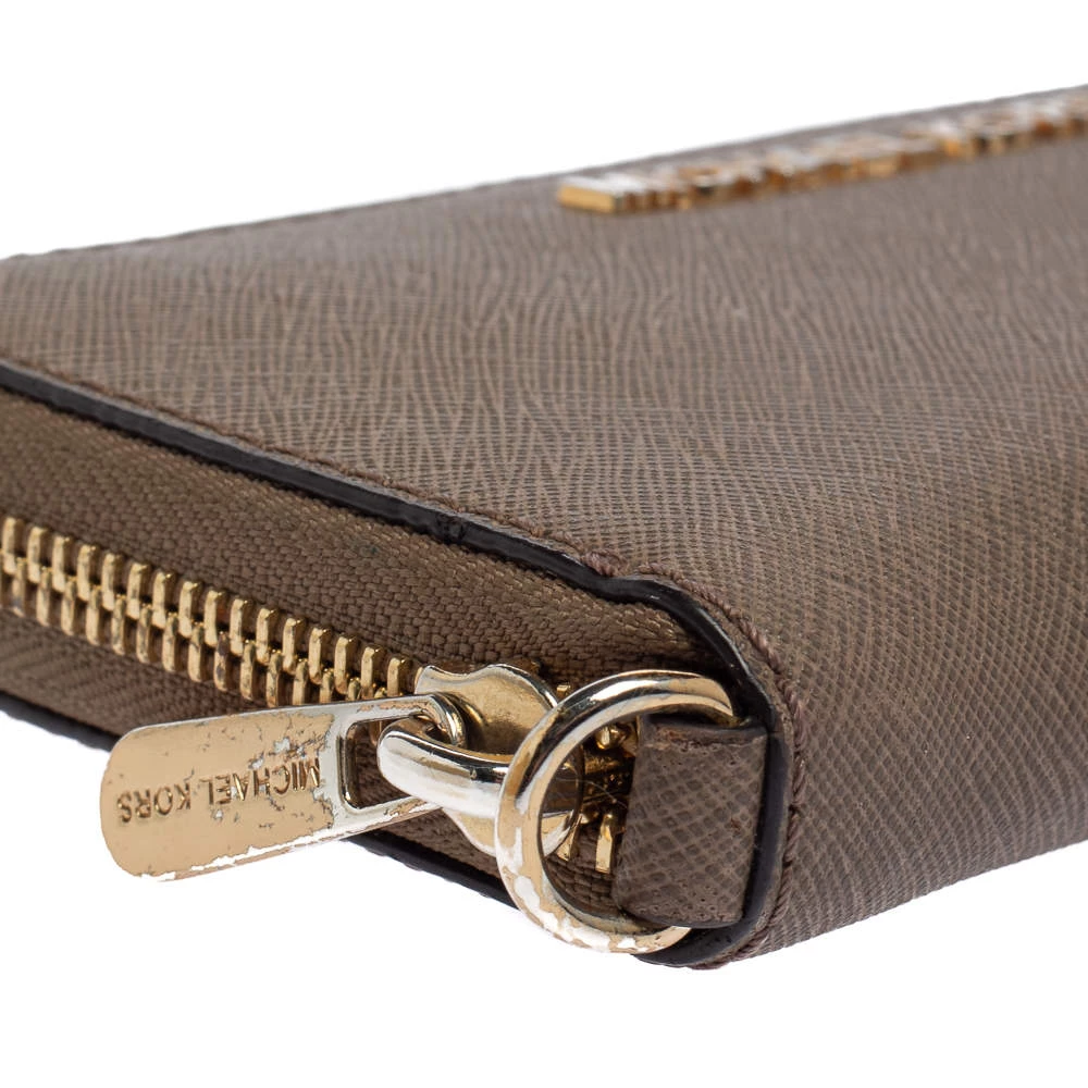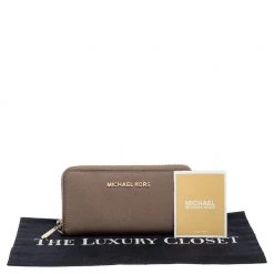 Accessorizing gets a new avatar with this gorgeous wallet from Michael Kors. Effortlessly carry your monetary essentials with this creation made from brown leather. The zip-around closure secures the compartmentalized interior effortlessly.