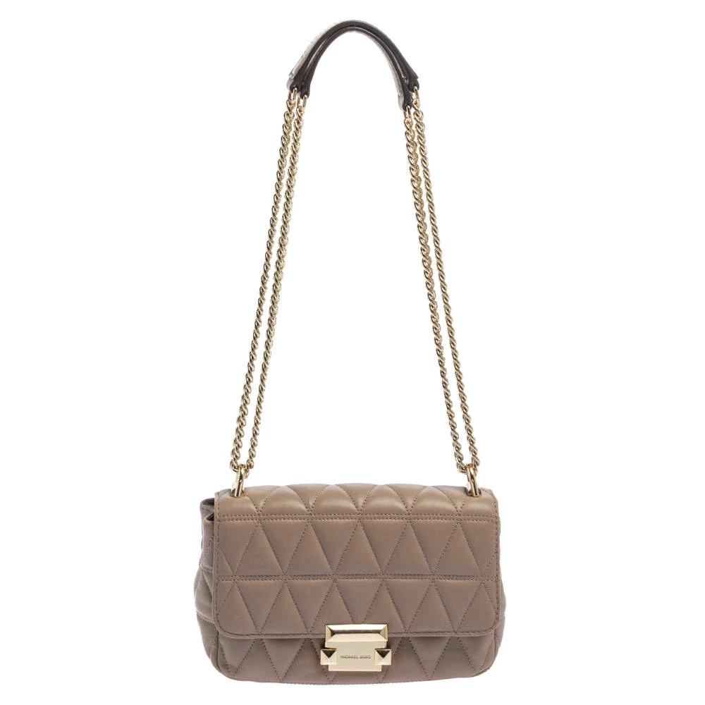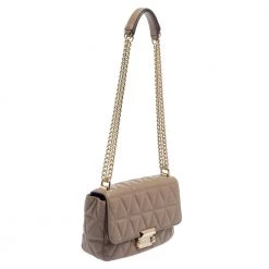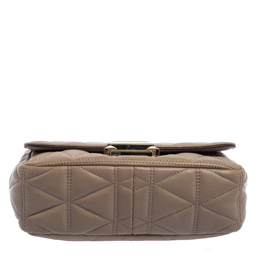This stylish shoulder bag hails from the house of Michael Kors and will deliver a signature touch to all your looks. It has been crafted from Matelassé leather. The beige-hued bag has a gold-tone lock closure on the front flap and a spacious nylon interior. it is finished with a long shoulder strap.
