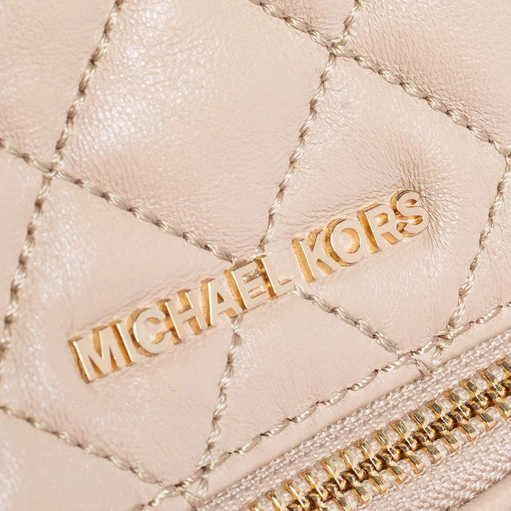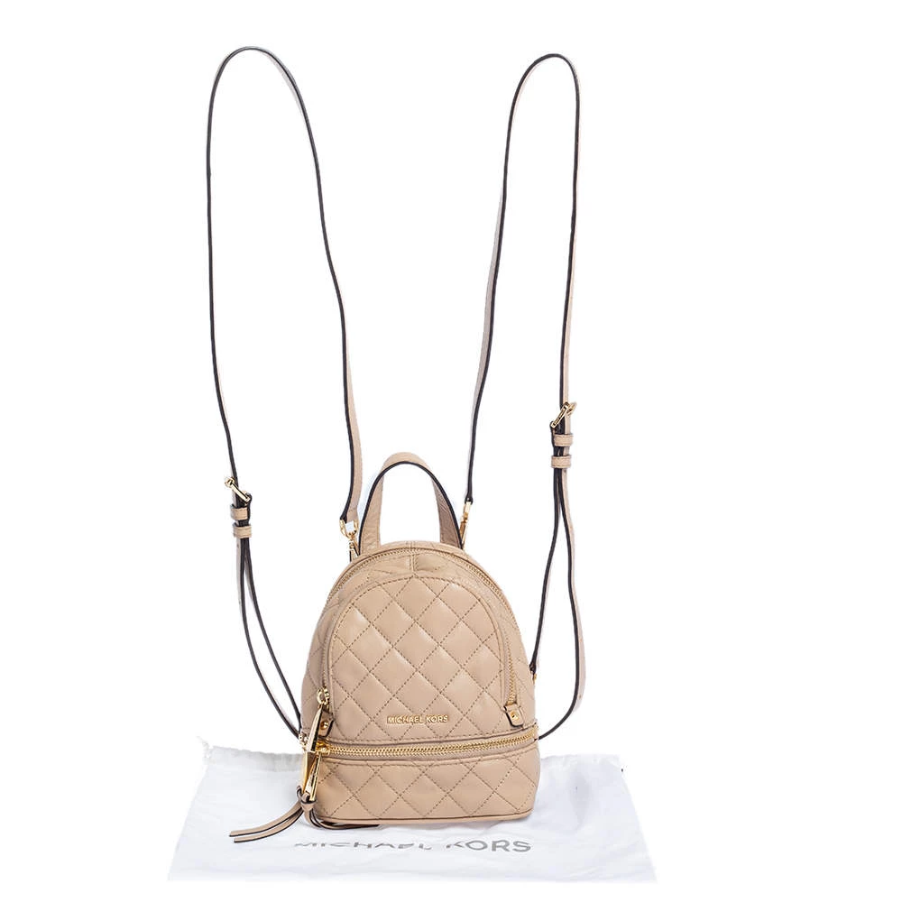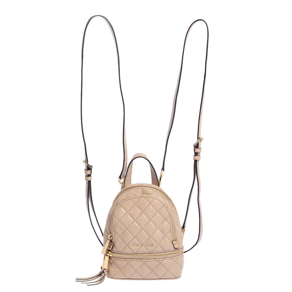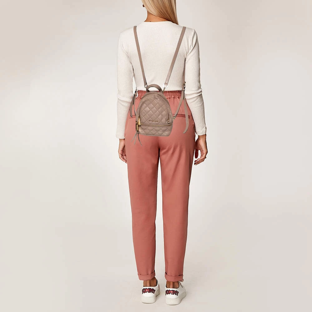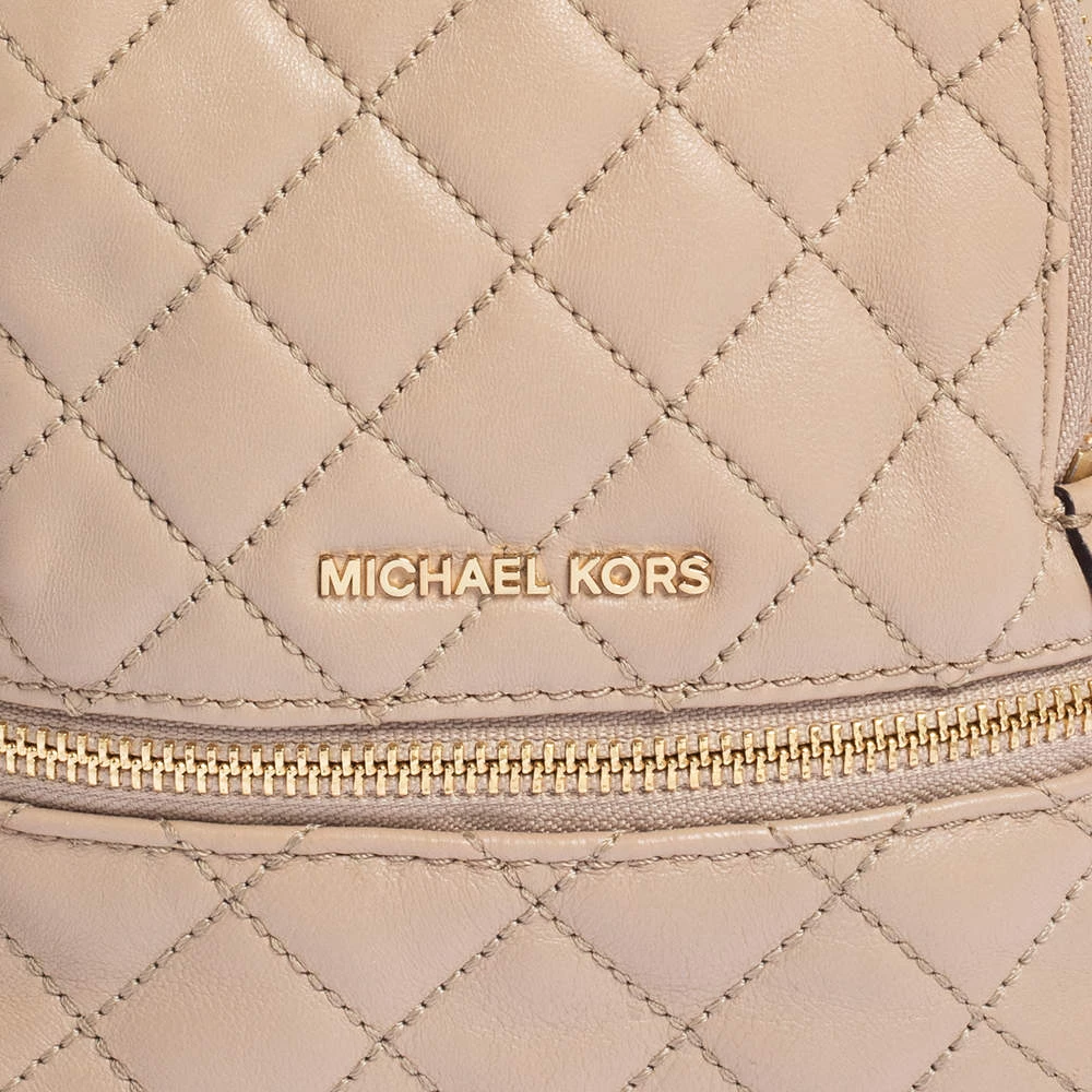 Get set to look uber stylish with this beige backpack from Michael Kors. It has been crafted from leather and it flaunts zippers at the top that reveal a fabric-lined interior, a zip pocket at the front, and shoulder straps. This piece is very much in vogue, so get your hands on this today!