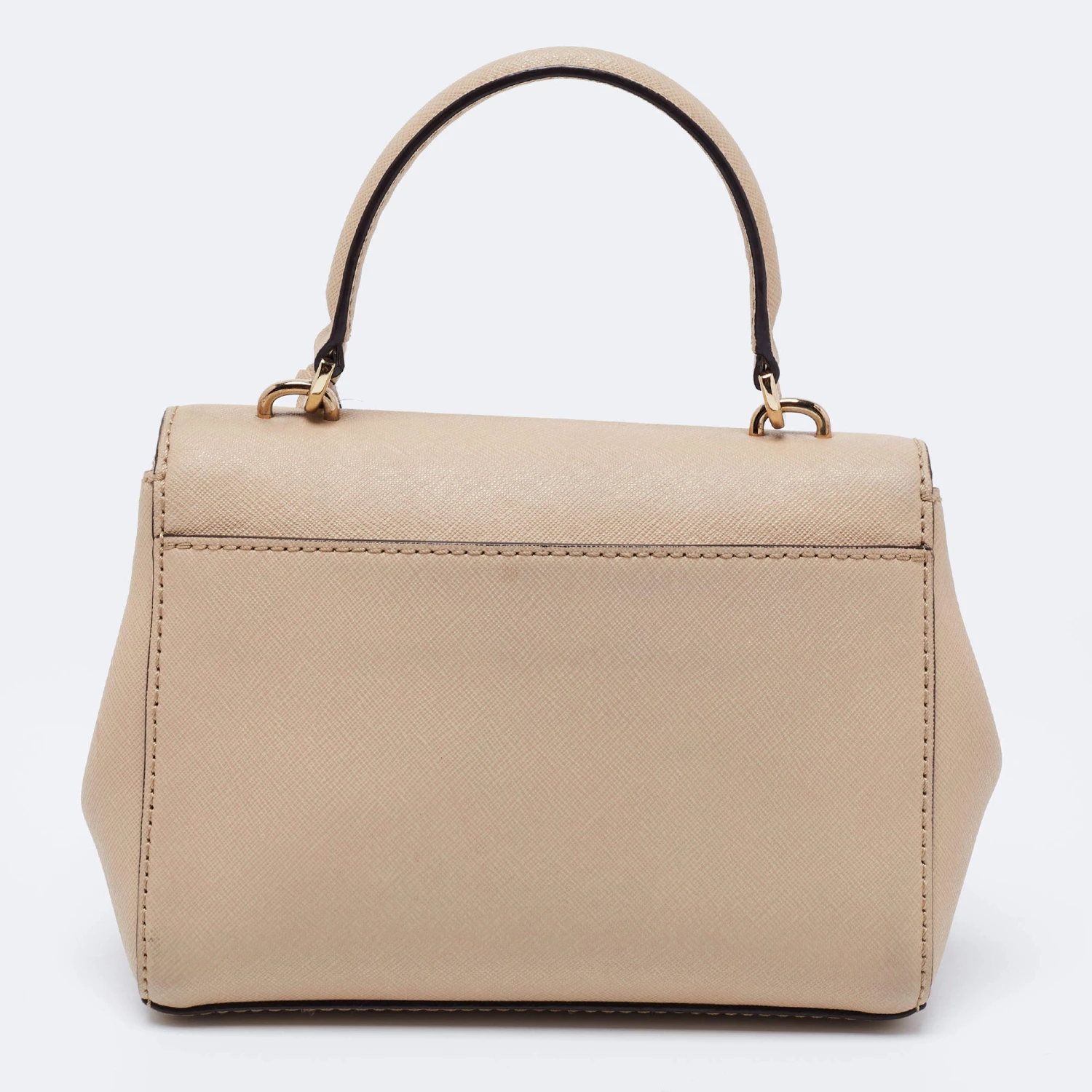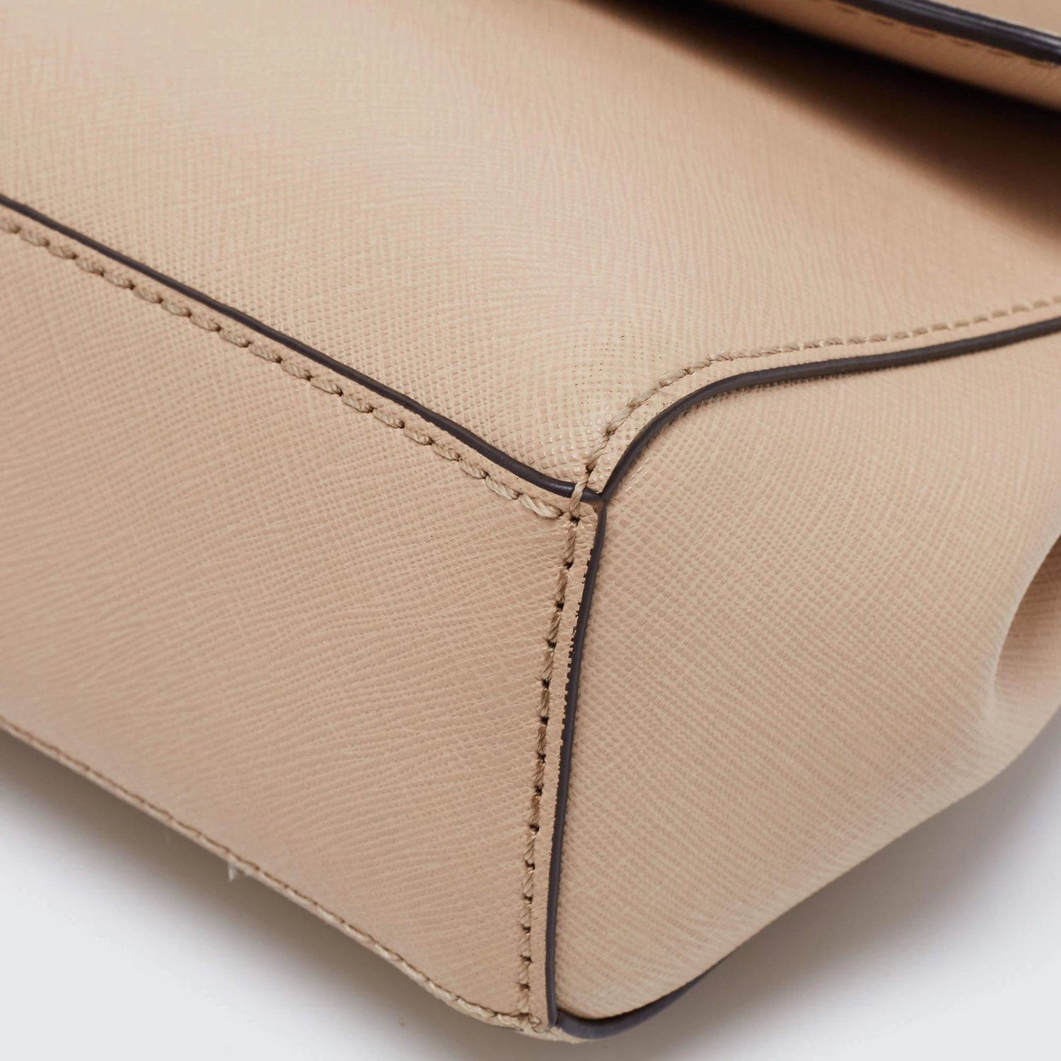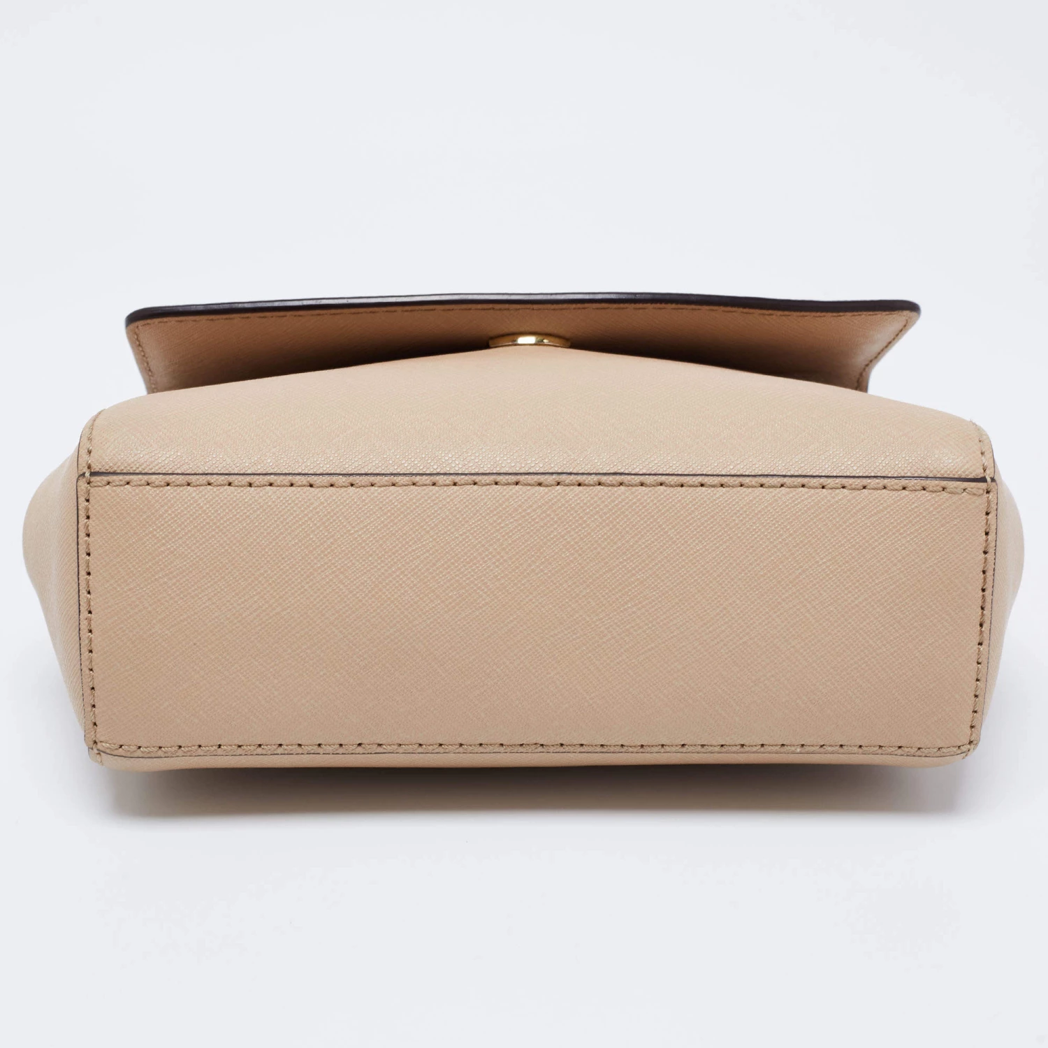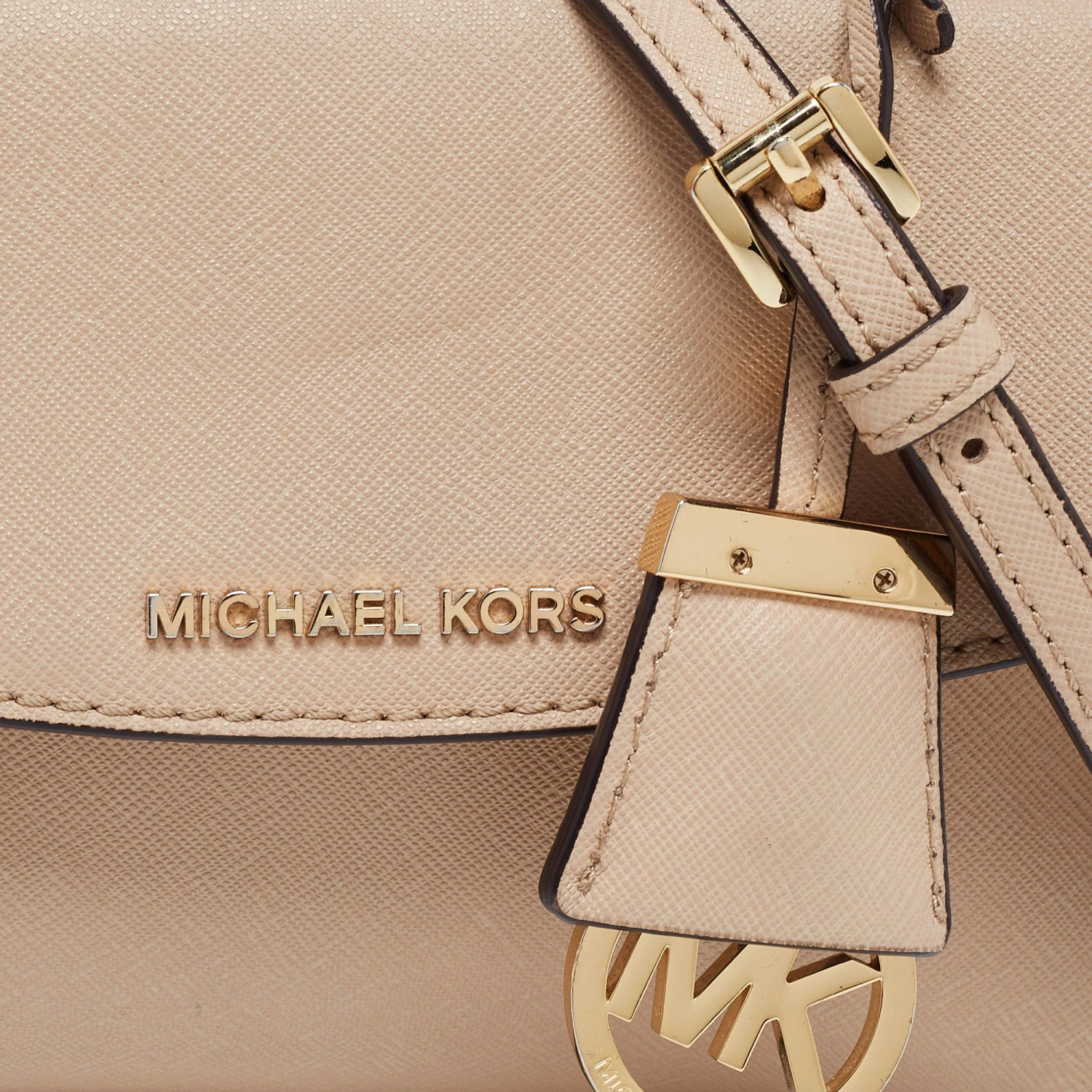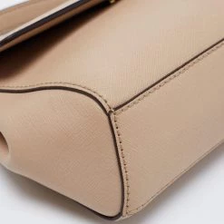 The crowd will appreciate your fashion sense when you accessorize this Michael Kors bag with your outfit. Crafted from Saffiano leather, the front flap gets a luxe update with a brand signature on it. While the shoulder strap and a single handle make it easy to carry around, the fabric-lined interior will keep your valuables in a refined way.
