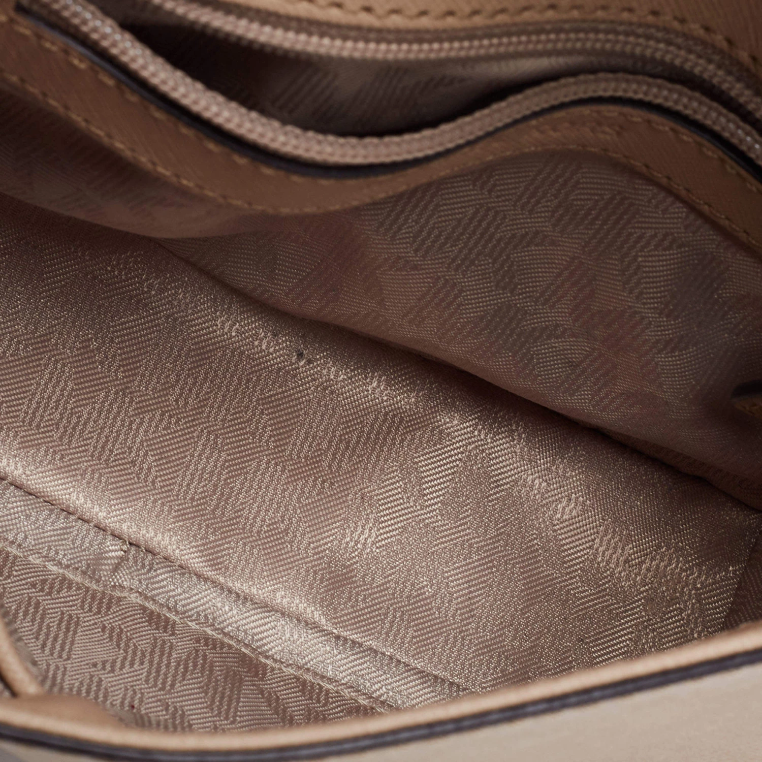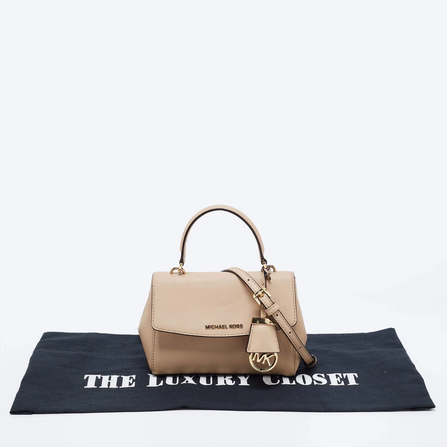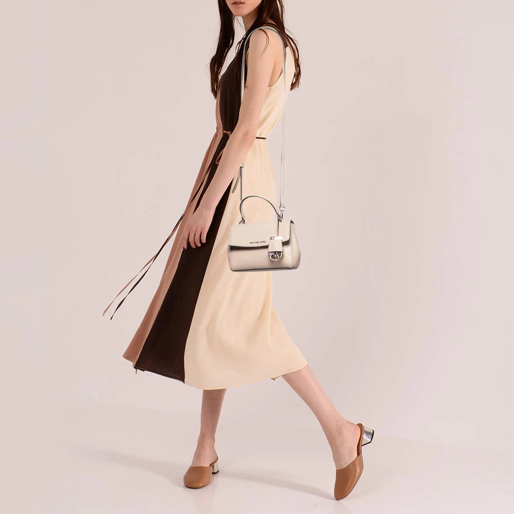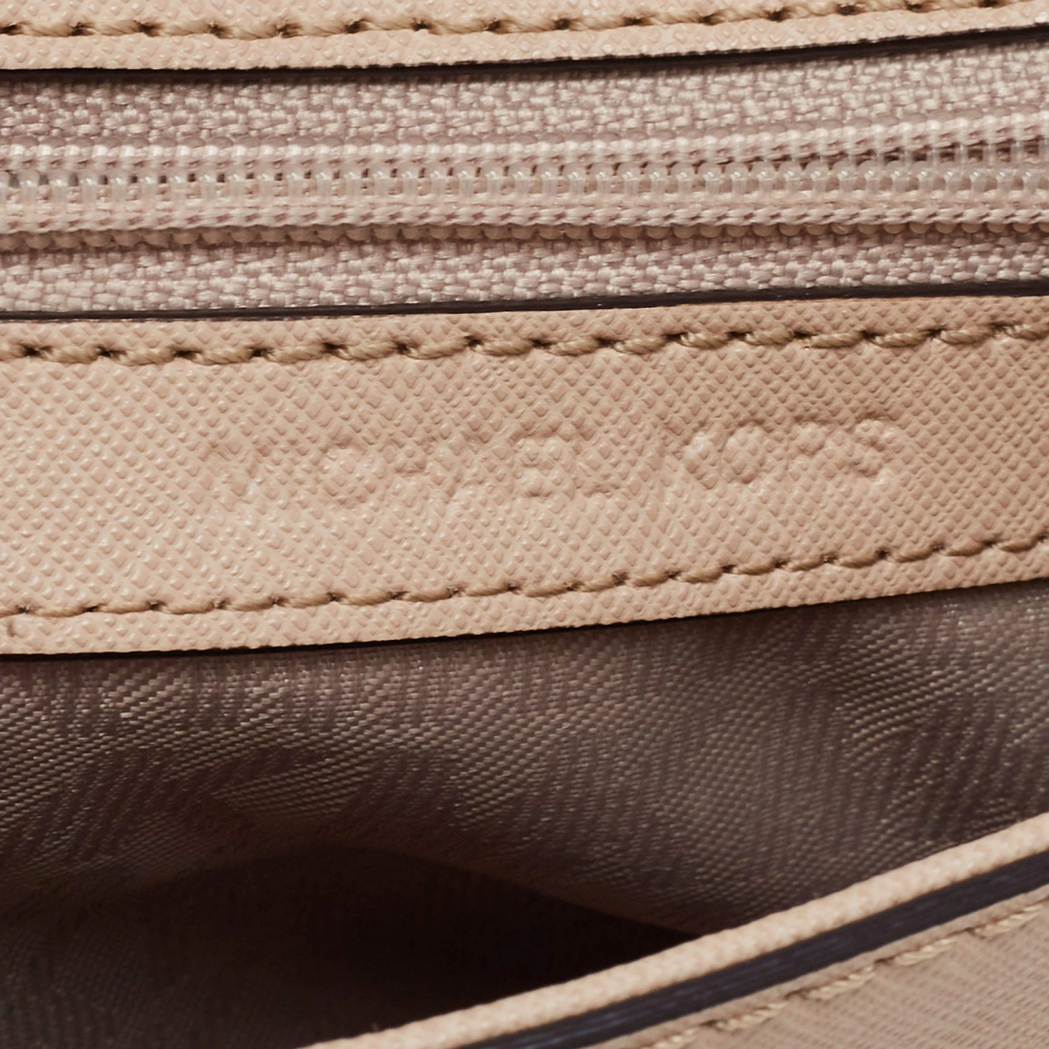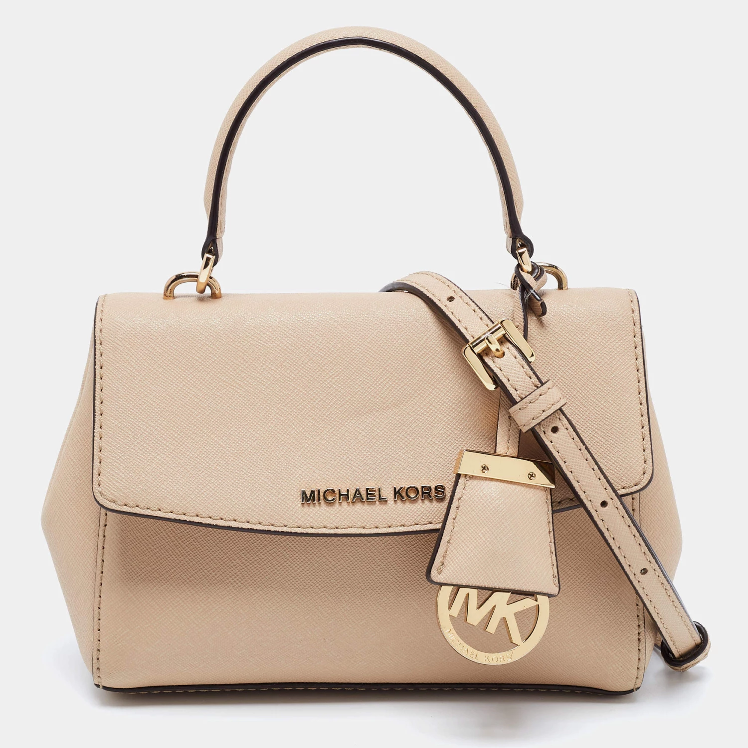 The crowd will appreciate your fashion sense when you accessorize this Michael Kors bag with your outfit. Crafted from Saffiano leather, the front flap gets a luxe update with a brand signature on it. While the shoulder strap and a single handle make it easy to carry around, the fabric-lined interior will keep your valuables in a refined way.