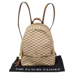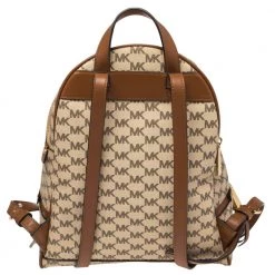 This Abbey backpack from Michael Kors is a functional piece ideal for college or even work. Stylish and sporty, the bag is crafted with signature coated canvas and leather. It features a front zip pocket, a brand label at the front, a top handle, and adjustable shoulder straps. The nylon-lined interior is perfect for stowing all your basics.