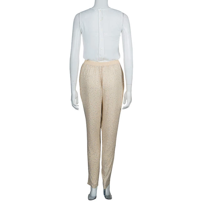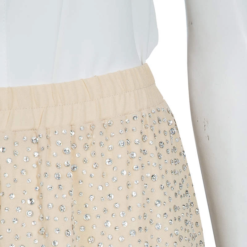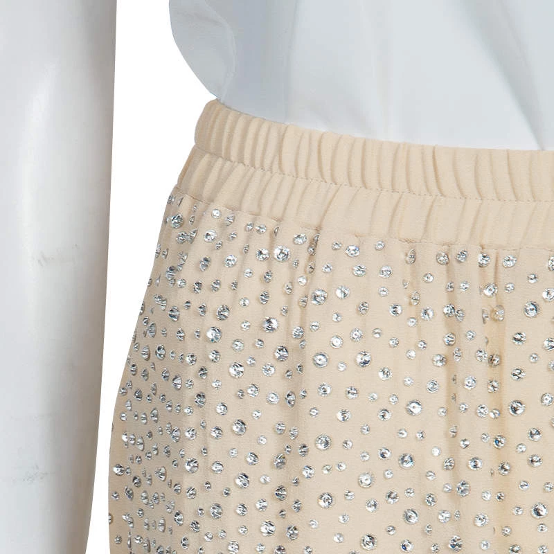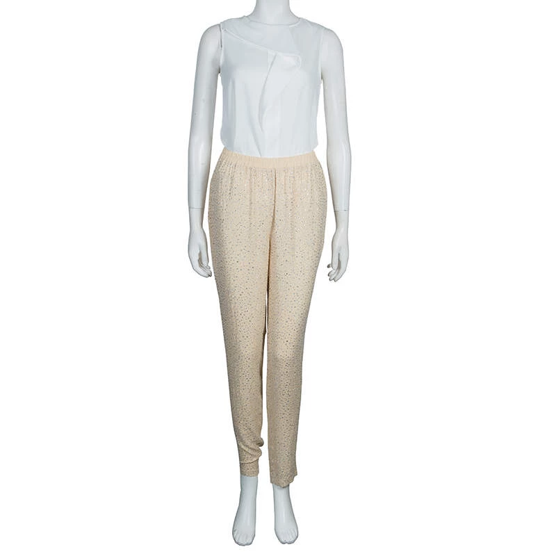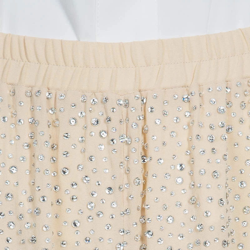 These pants from Michael Kors will enchant you with their feminine and subtle glamour. Cut from silk, the beige pants are accented with Swarovski embellishment throughout and elasticized waistband.