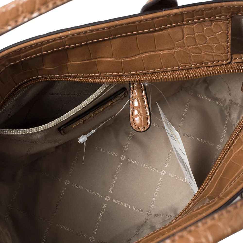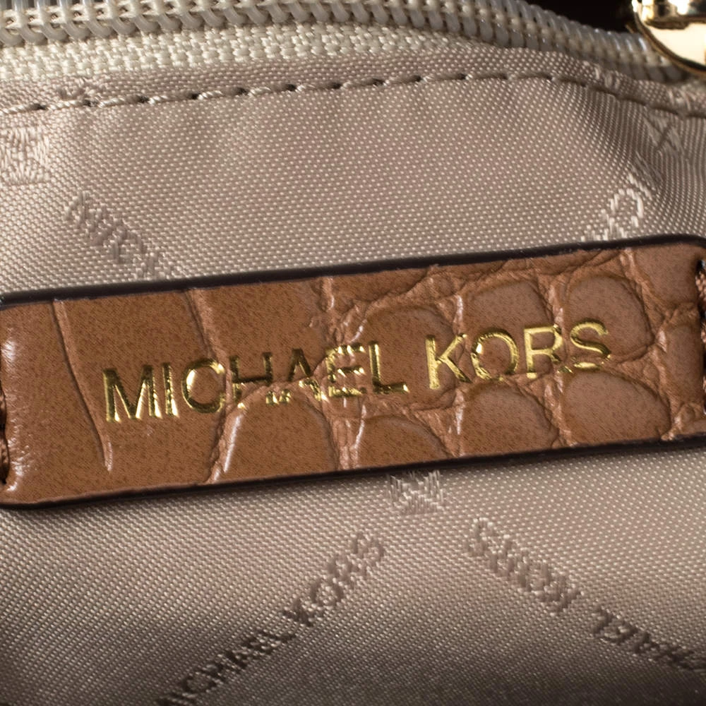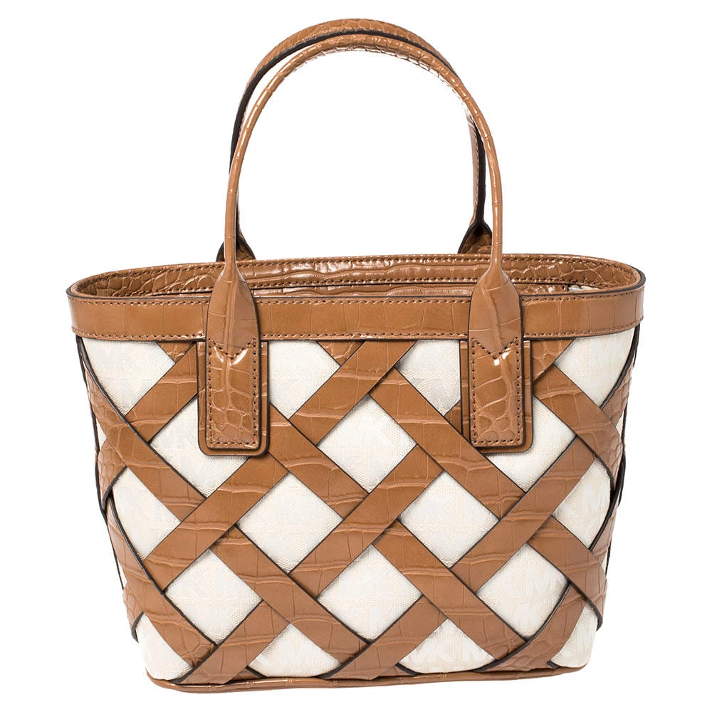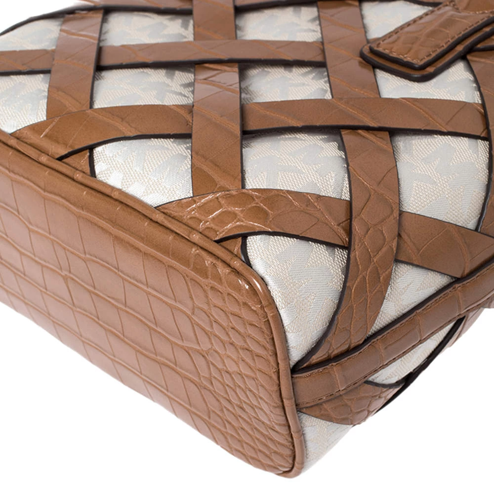 Characterized by a unique woven design, this Michael Kors Sienna tote is a beautiful creation from the house. It has been expertly designed from signature coated canvas and croc-embossed leather and comes fitted with two top handles. It bears the brand logo on the exterior and can easily hold your day-to-day essentials.