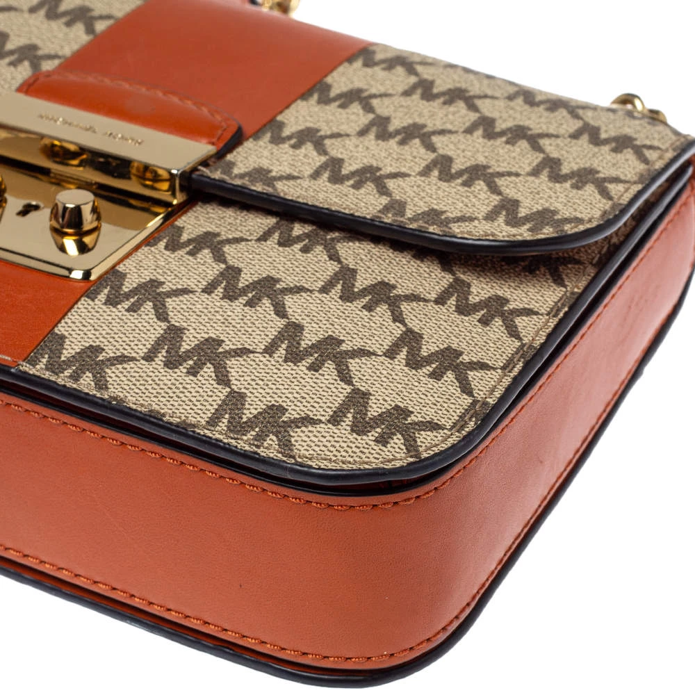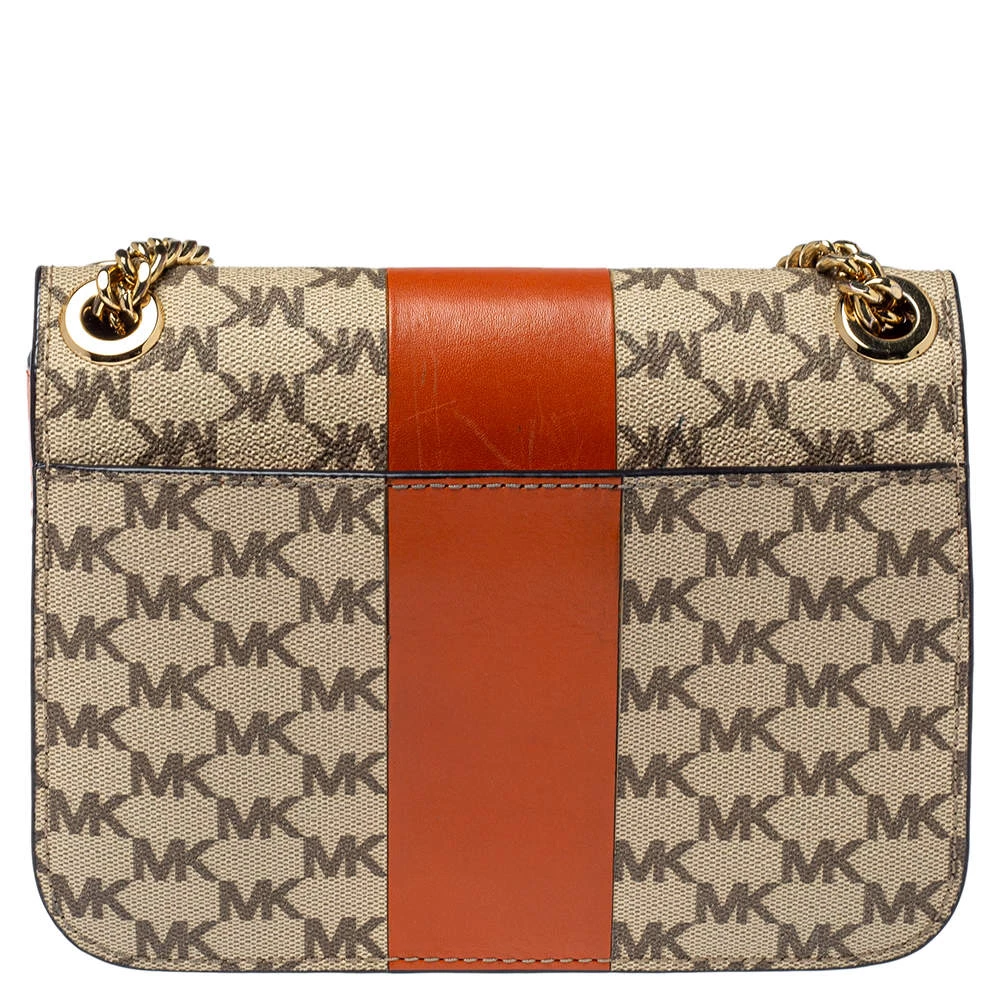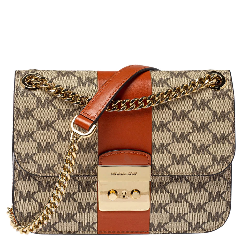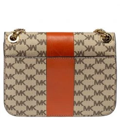 Remarkable for its brilliant craftsmanship, this bag from Michael Kors will upgrade your style quotient. Make a stunning addition to your accessory collection with this rich and fabulous signature canvas & leather bag. The nylon lining ensures the quality of this bag. Be it any occasion, this beige & tan bag will work with all your ensembles.