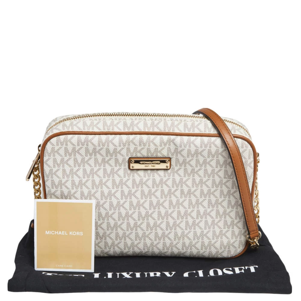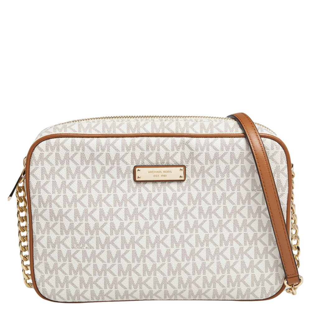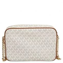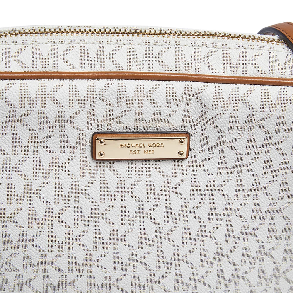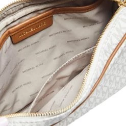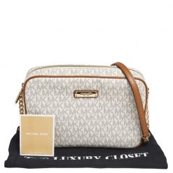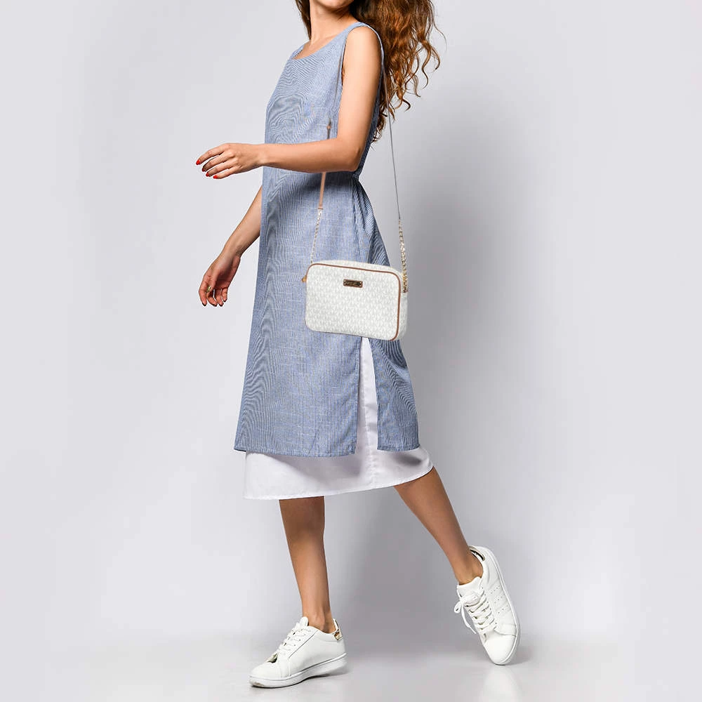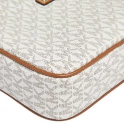 This Michael Kors bag is beautiful in so many ways. From its design to its structure, this bag exudes charm and high-end fashion. The bag flaunts the beige-tan signature coated canvas on the exterior with the gold-toned logo plaque and contrast piping decorating it. This bag can be carried easily with the chain strap provided.