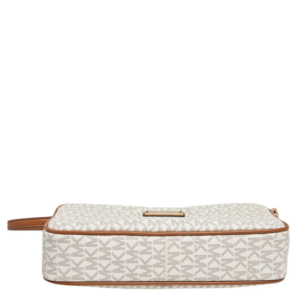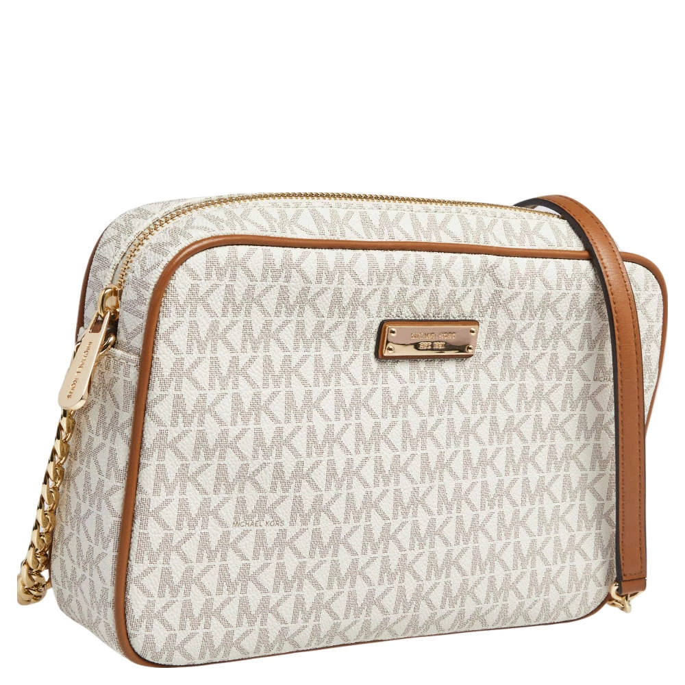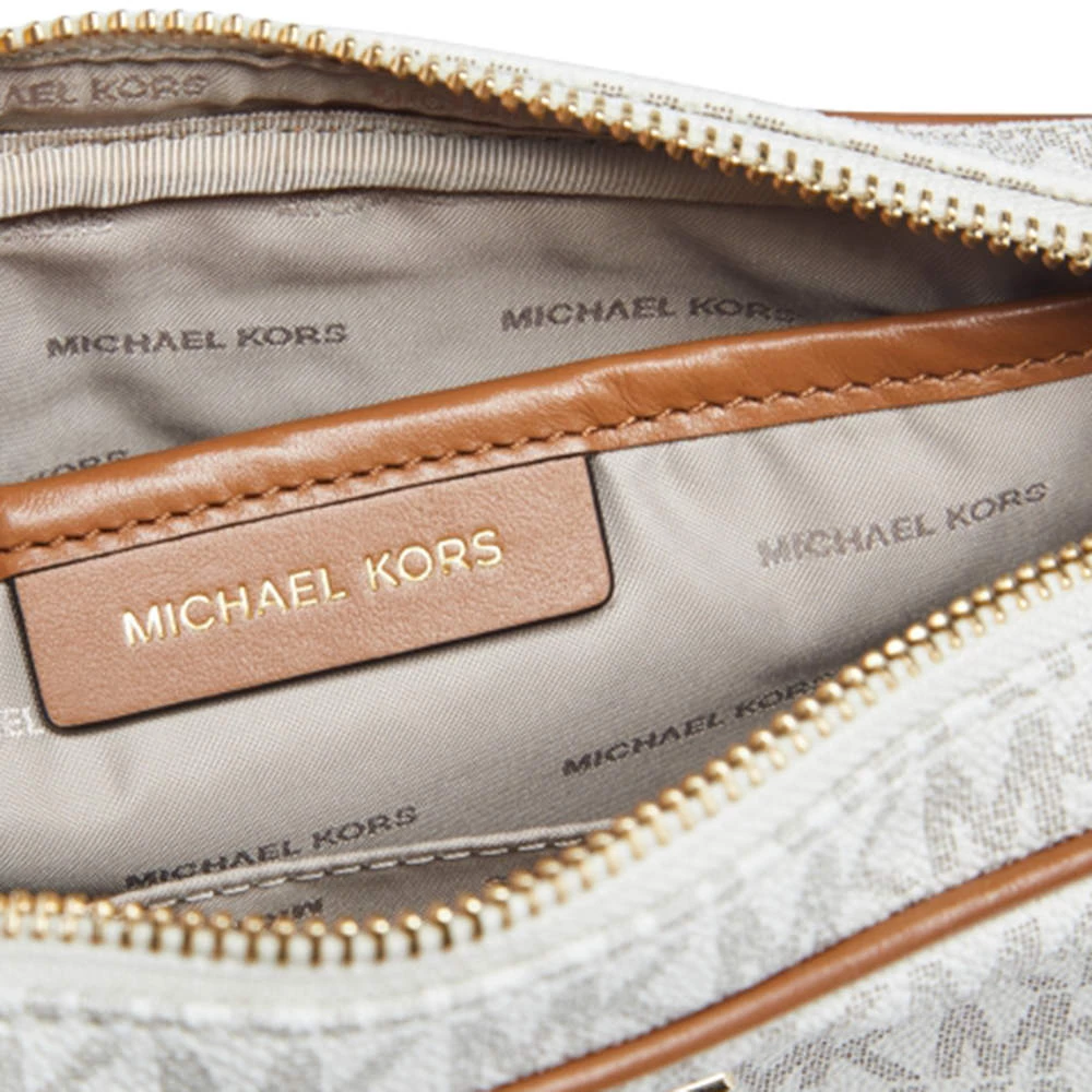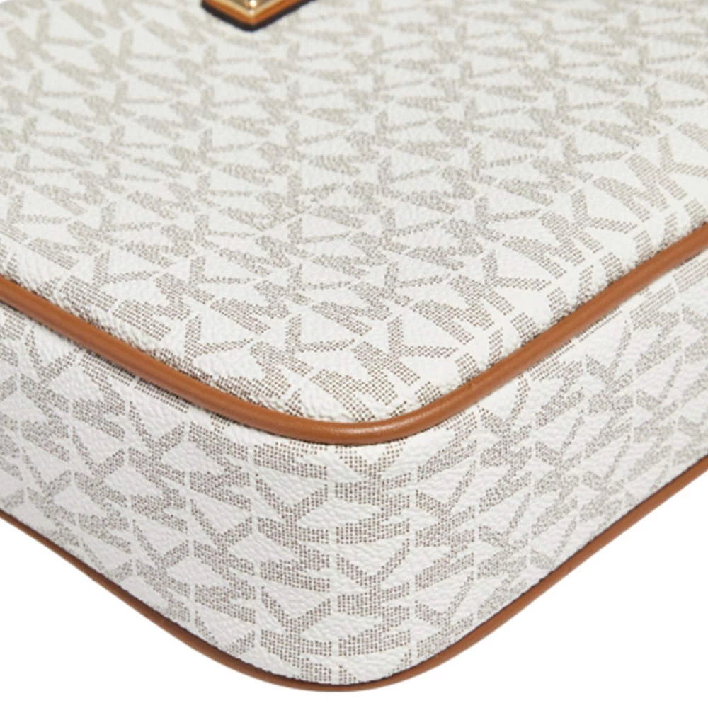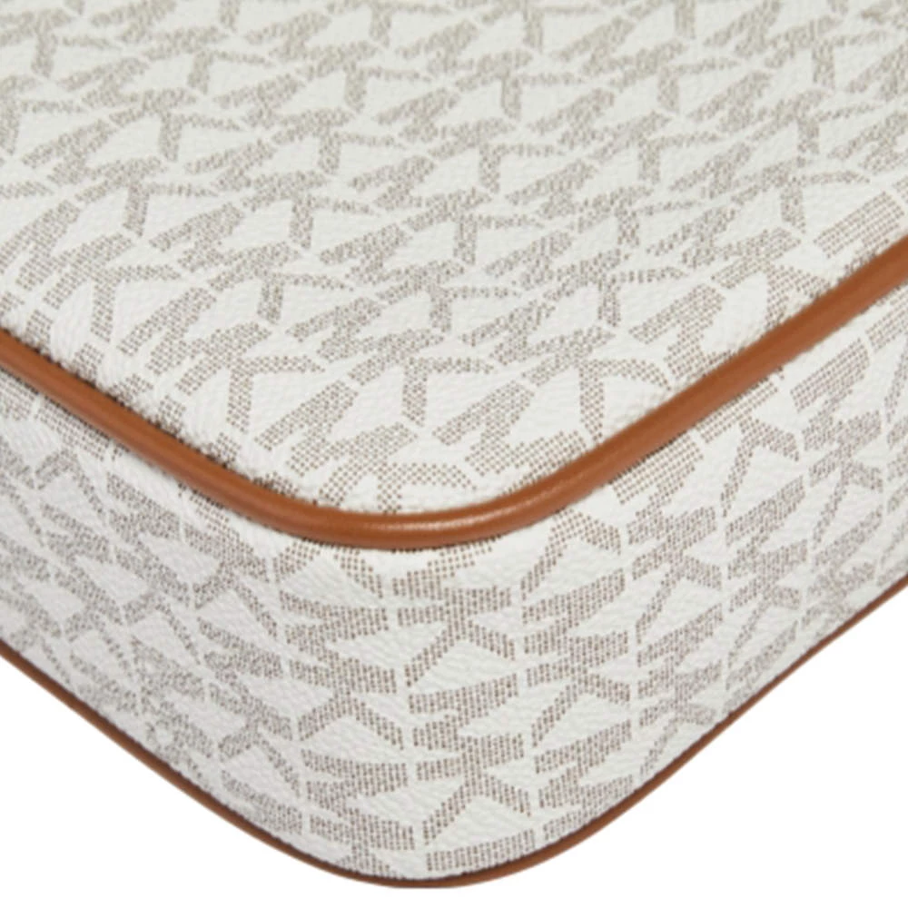 This Michael Kors bag is beautiful in so many ways. From its design to its structure, this bag exudes charm and high-end fashion. The bag flaunts the beige-tan signature coated canvas on the exterior with the gold-toned logo plaque and contrast piping decorating it. This bag can be carried easily with the chain strap provided.