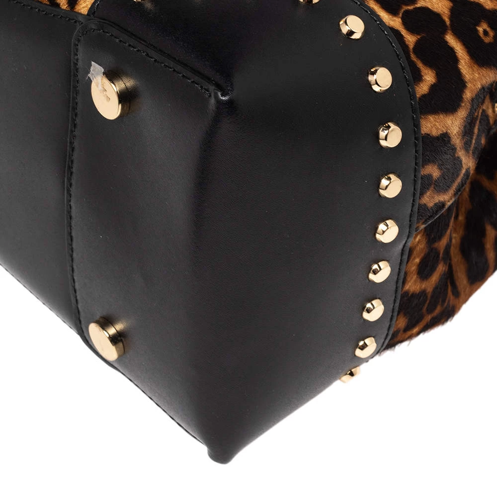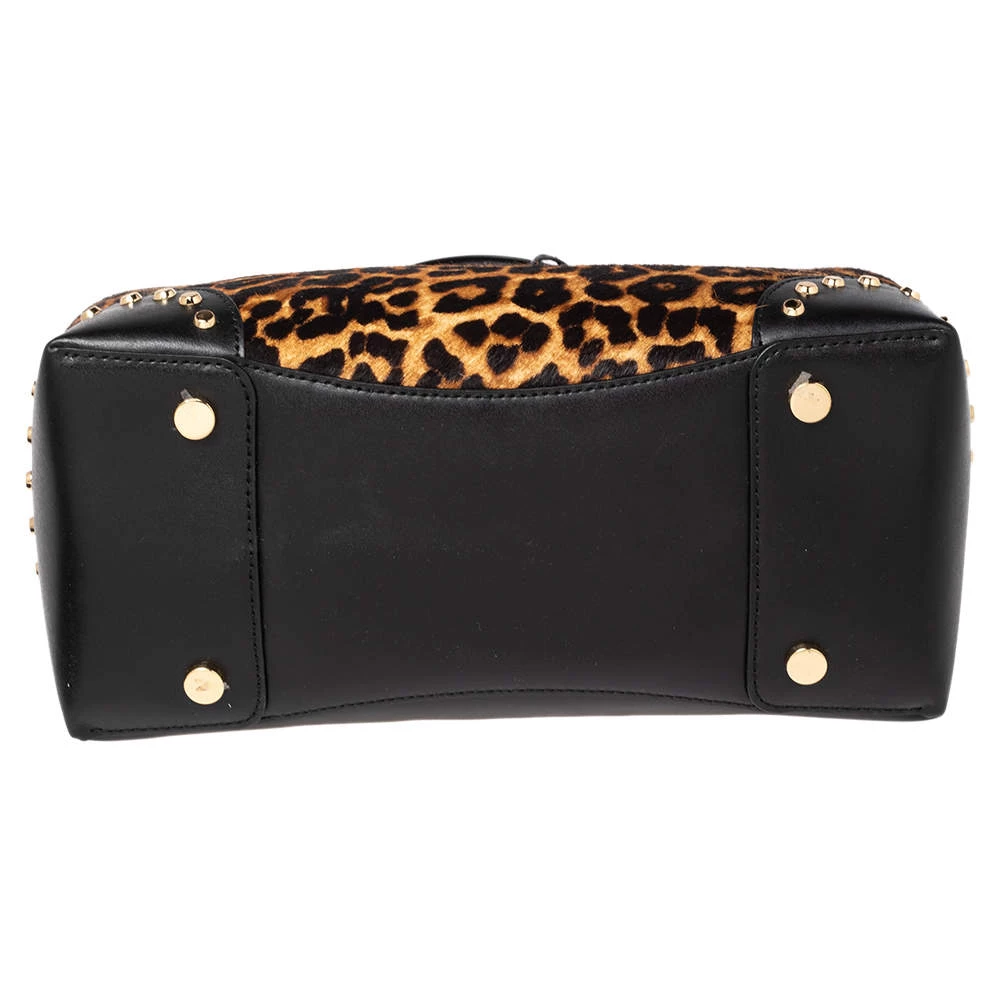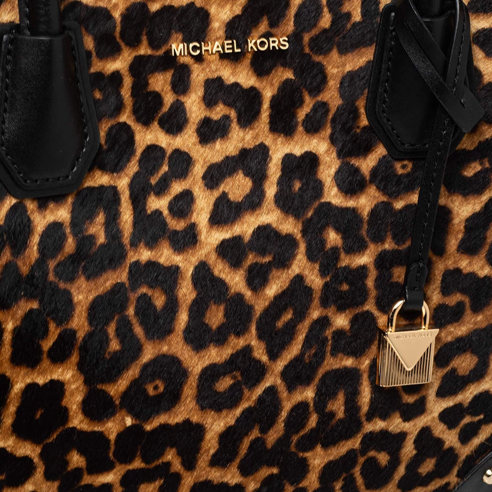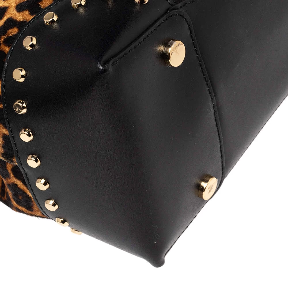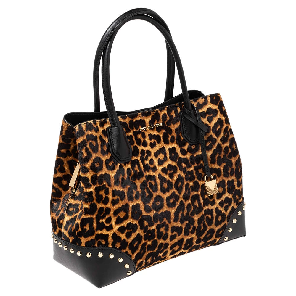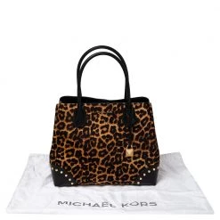 Featuring a chic and fabulous style, this Michael Michael Kors tote is modern. Crafted from calf hair and leather, the tote features stud details, dual handles, and a padlock. It opens to a spacious leather and nylon interior divided by a zipped compartment. The tote comes with protective metal feet and you are sure to love swinging this beauty.