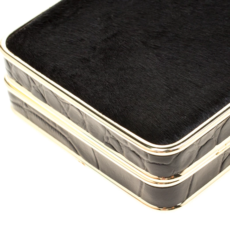 - Exterior Material: Calfhair and Croc Embossed Leather