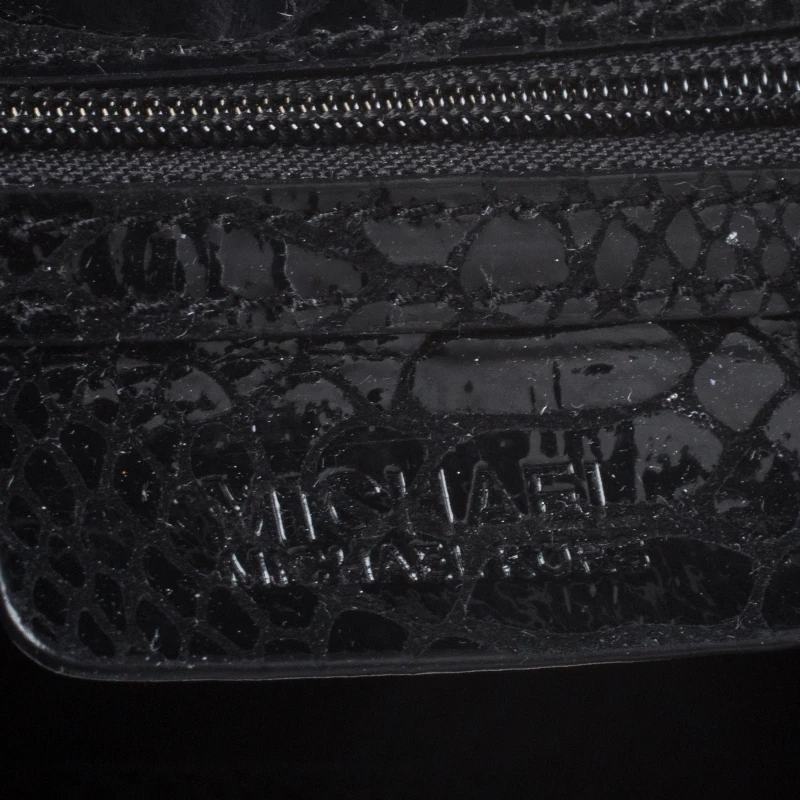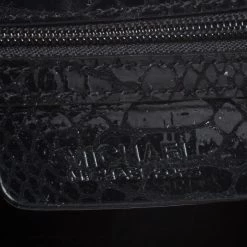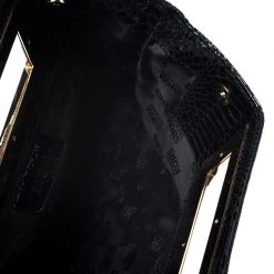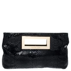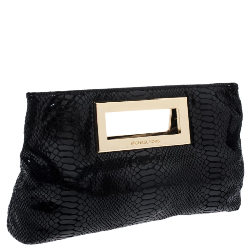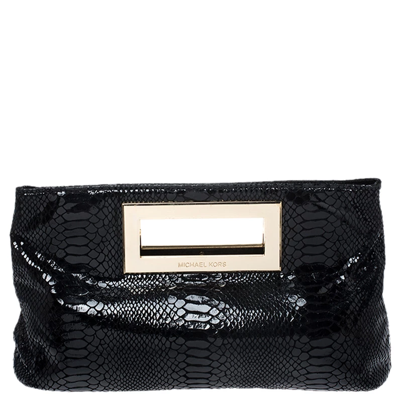 This Michael Kors Berkley clutch is sure to be an amazing addition to your closet! The black piece is crafted from glazed python-embossed leather and features dual inbuilt gold-tone handles. It opens to a spacious nylon-lined interior that can easily hold all your daily essentials. Carry it with elan!