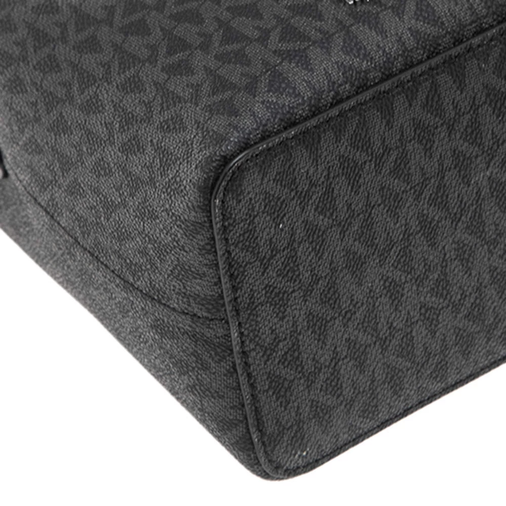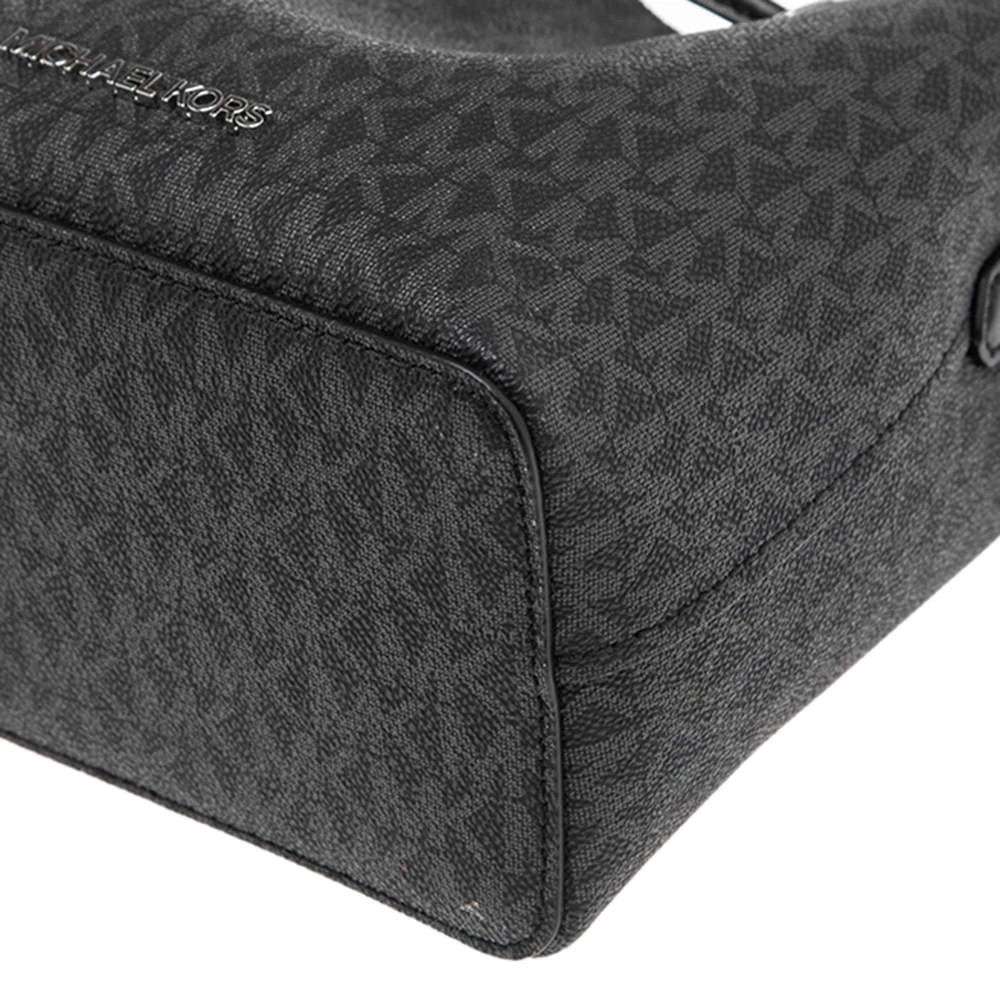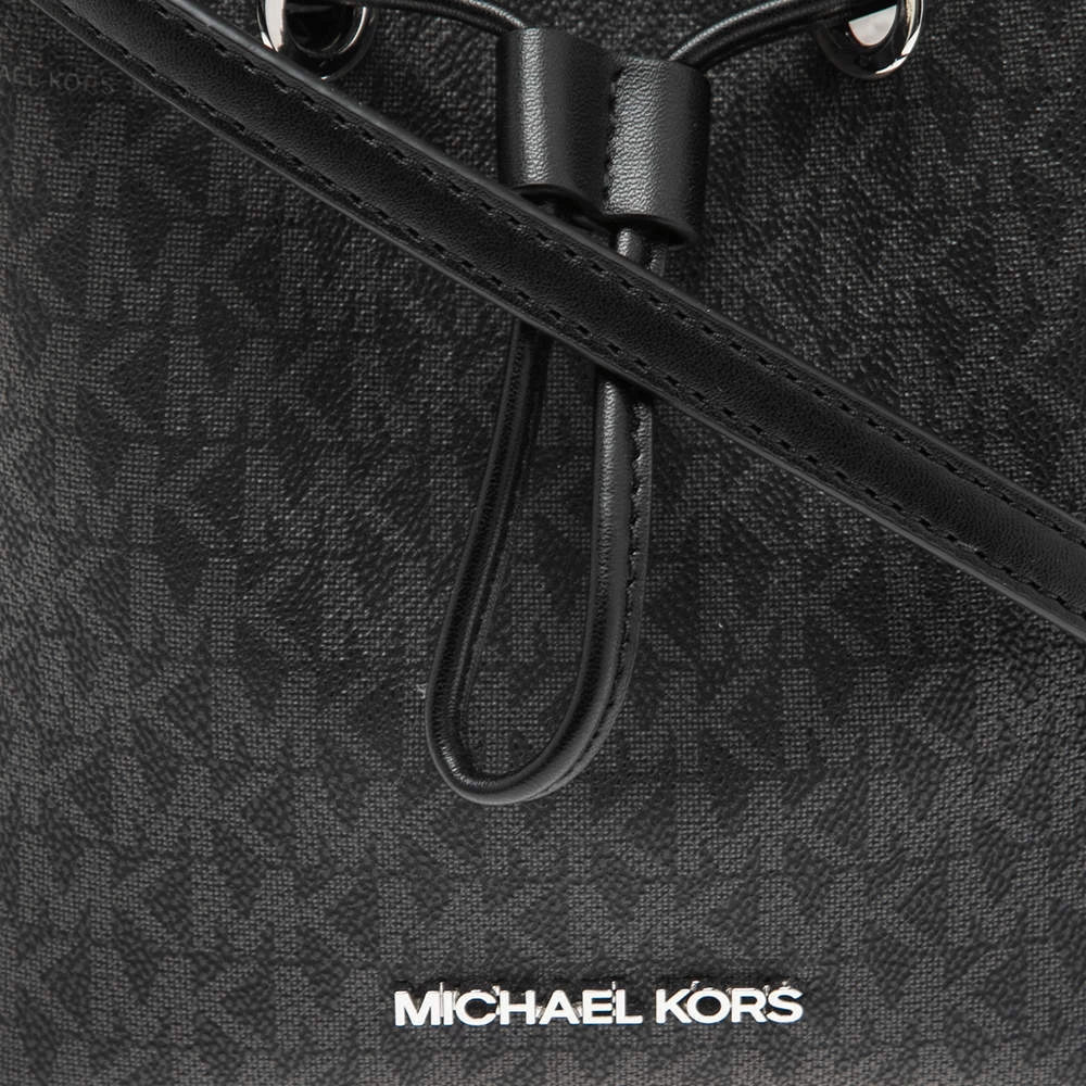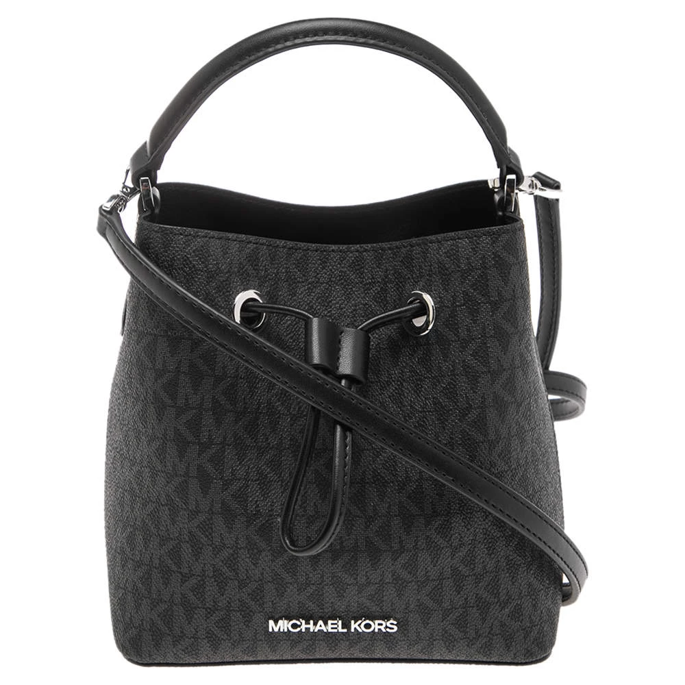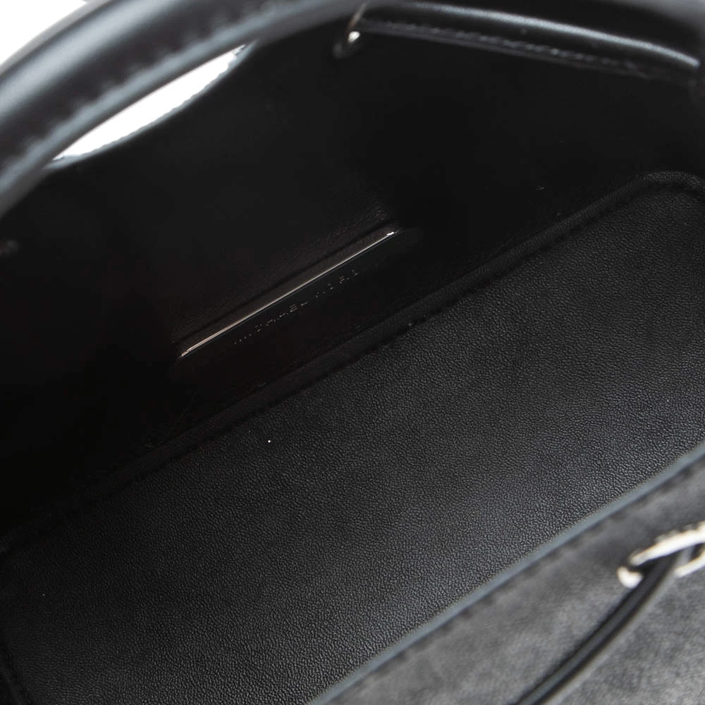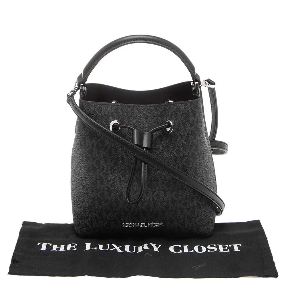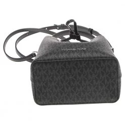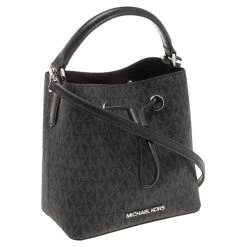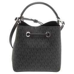 This new-age, functional Suri bucket bag has been designed from a black signature canvas body secured with a leather drawstring top. It comes detailed with a top handle and a detachable shoulder strap that can be adjusted to the desired drop. This bag is adorned with silver-tone hardware. Carry your everyday essentials in the leather-lined interior of this bag.`