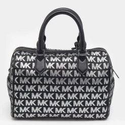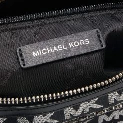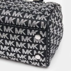 This Bedford Boston bag from Michael Kors is all about elegance, luxury, and practicality! It is crafted from black jacquard and leather on the exterior. It has two top handles, a spacious fabric-lined interior, and silver-tone hardware. This bag will help you look stylish!