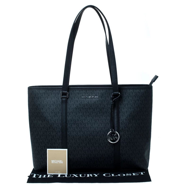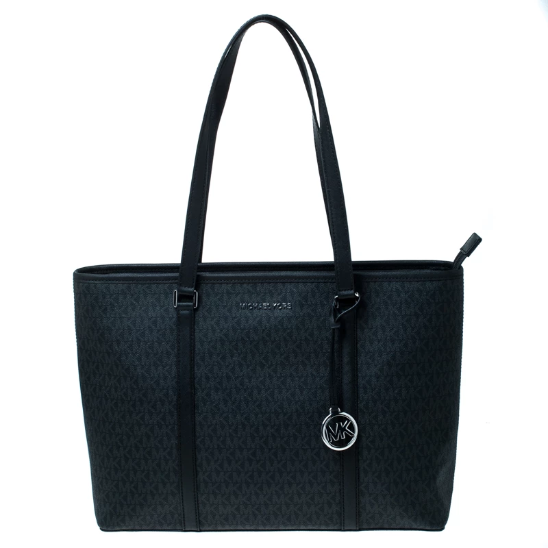 Spacious and durable, this Sady tote is from Michael Kors. It has been crafted from signature canvas and enhanced with leather. It is equipped with two shoulder handles, an MK charm, and a well-sized nylon interior.