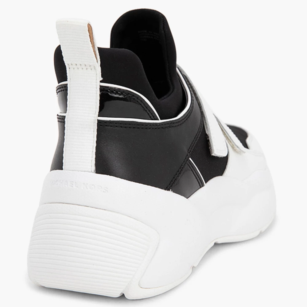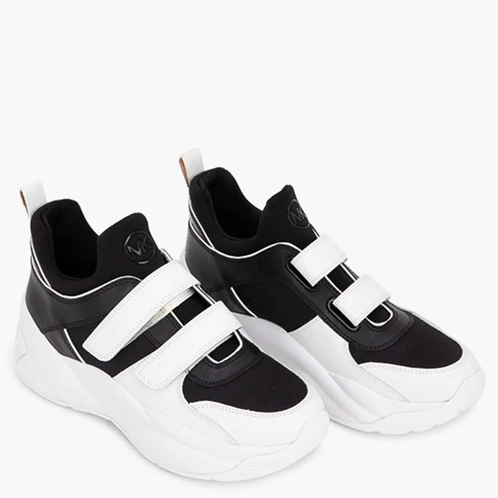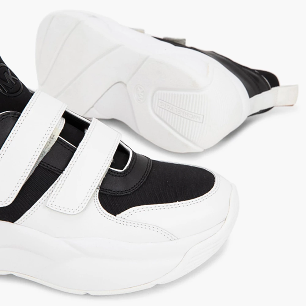 Slip into these Michael Kors sneakers to know the experience of all-day comfort. Crafted with a canvas and leather upper, these black Keeley Trainer sneakers are secured with dual velcro straps and set on rubber soles.