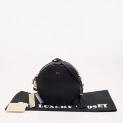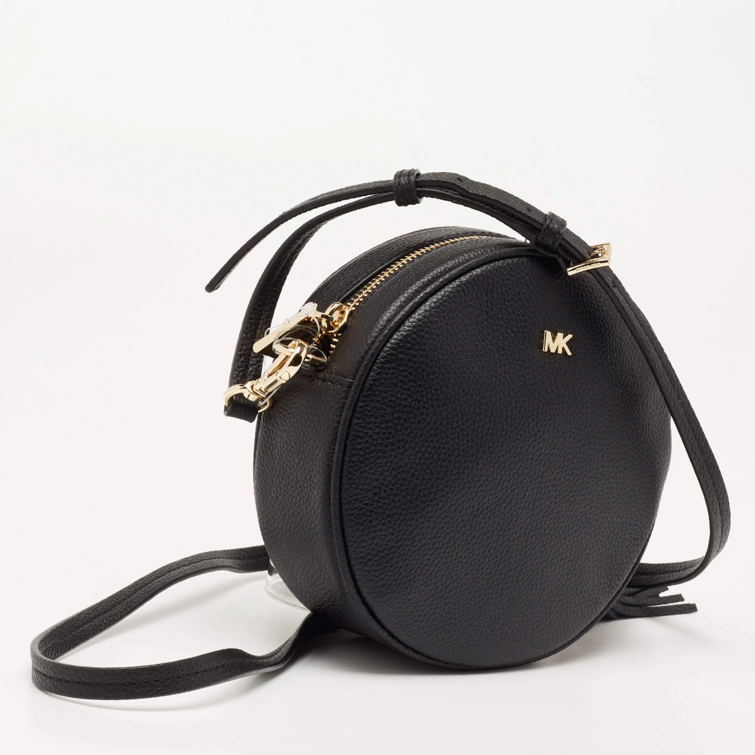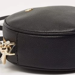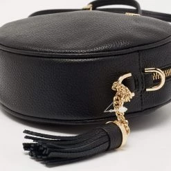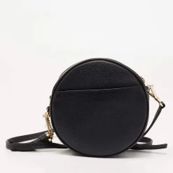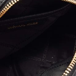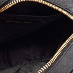 This crossbody bag by Michael Kors is a great option for carrying your essentials. This black leather bag has a compact, round size and a zipper to secure the fabric interior. Designed to be ideal for everyday use, this crossbody bag is a must-have.