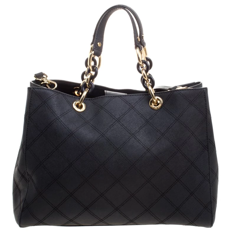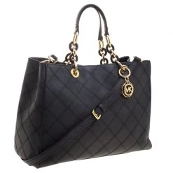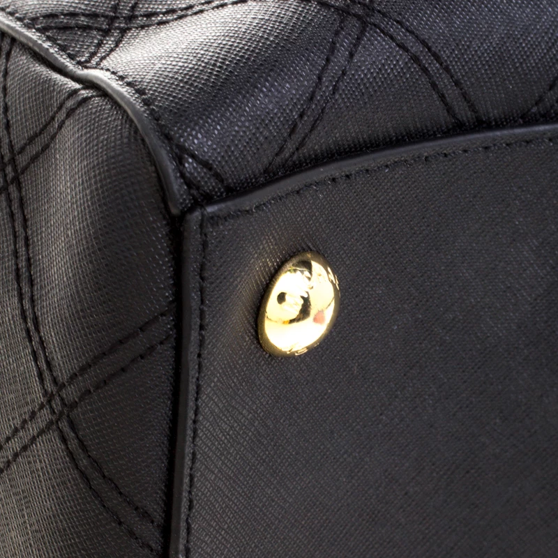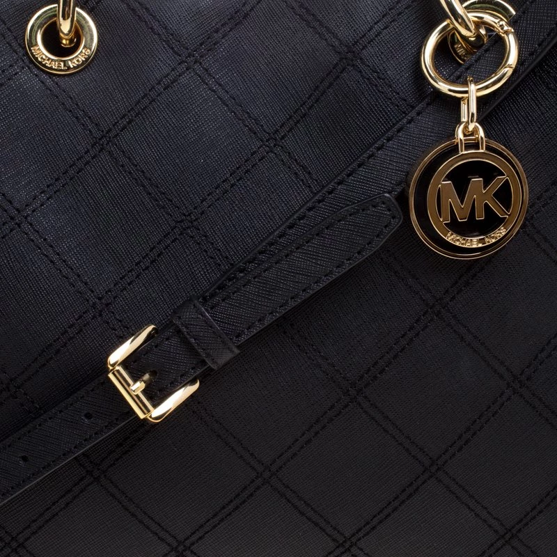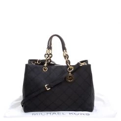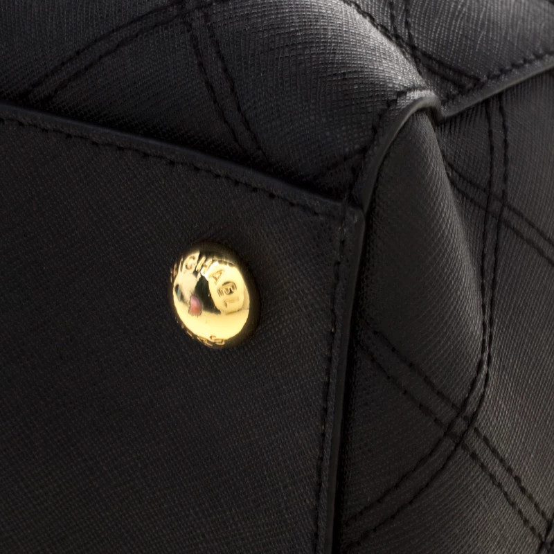 This Cynthia tote by Michael Kors is a piece all fashionistas must look out for! Meticulously crafted from leather, it features a black hue and two handles for you to parade it. The bag is equipped with a spacious fabric-lined interior that has a zip pocket. Complete with gold-tone hardware and their MK charm, this bag will make an ideal buy.