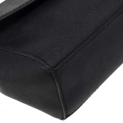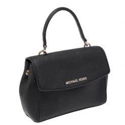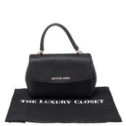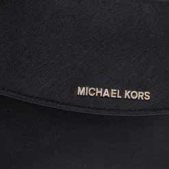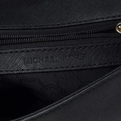 This black crossbody bag comes from the fashion house of Michael Kors. Crafted from leather, it features a durable fabric interior that ensures to house your lipstick, wallet, and other essentials. Designed with a flap closure and a top handle, it flaunts a gold-tone brand logo at the front. It is accompanied by a detachable shoulder strap.