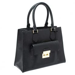 Elegant and stylish, Michael Kors collections capture the effortless, nonchalant finesse of the modern woman. Crafted from leather in a black hue, this chic tote features a handy front pocket and a spacious interior. The sleek, understated silhouette is punctuated with gold-tone hardware.