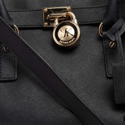 This simple Hamilton tote from Michael Kors is a worthy buy. It has been crafted from leather in a timeless black shade and decorated with an engraved padlock on the front. The bag has two handles, a shoulder strap, and a spacious fabric interior. This creation is ideal for everyday use.