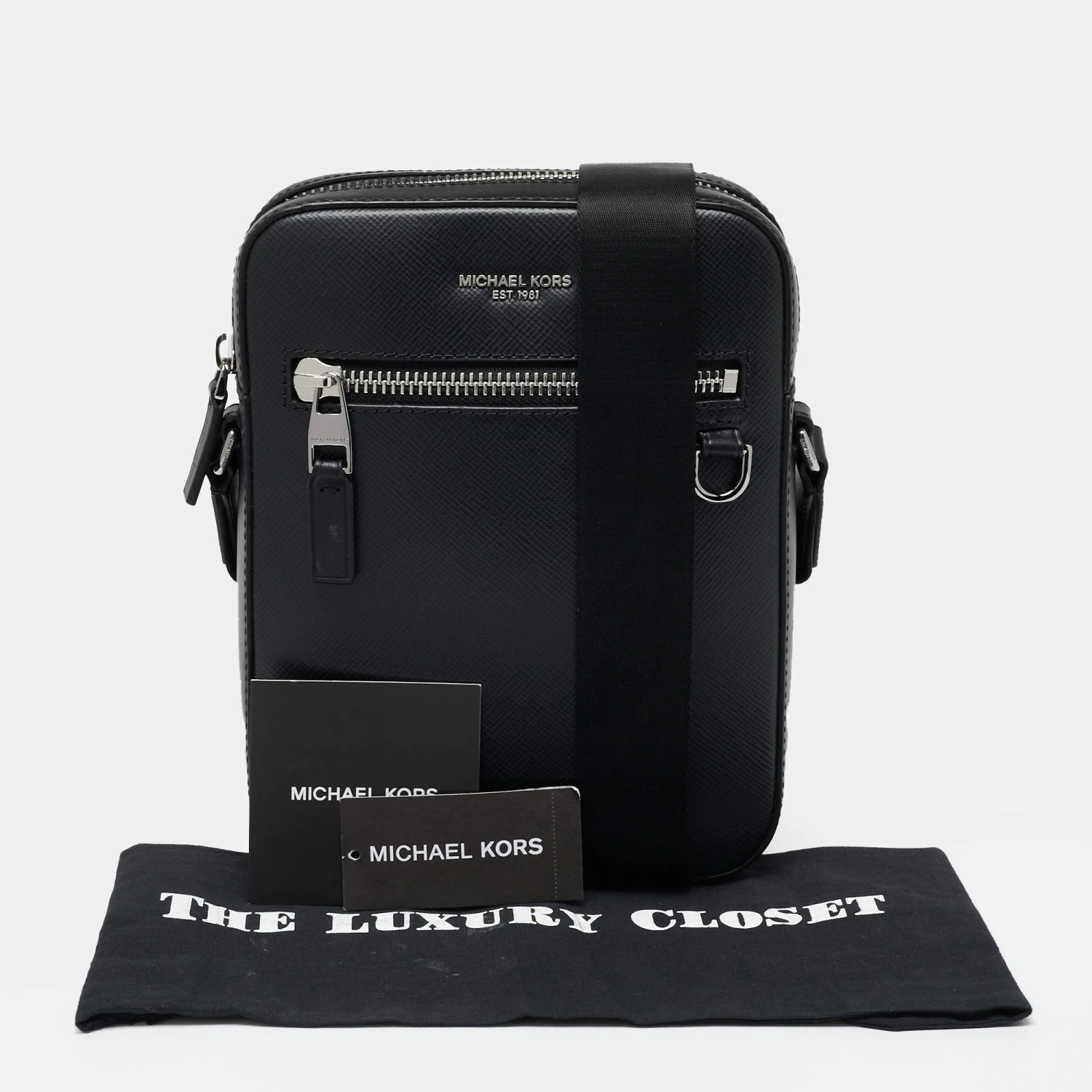 If you prefer traveling light, then this Michael Kors Messenger bag will be a perfect choice. An exterior front zipper pocket, nylon-lined interior, and an adjustable shoulder strap make it an accessory of utility. The bag comes created from leather and gets a luxe update with the brand signature on the front.